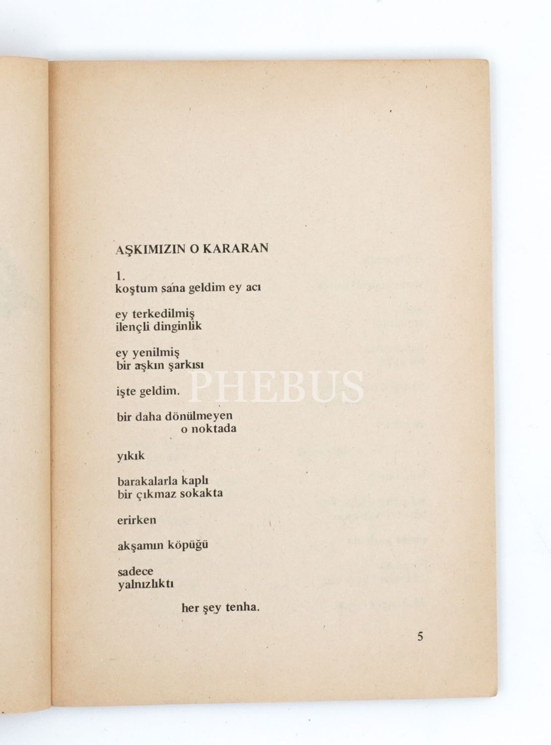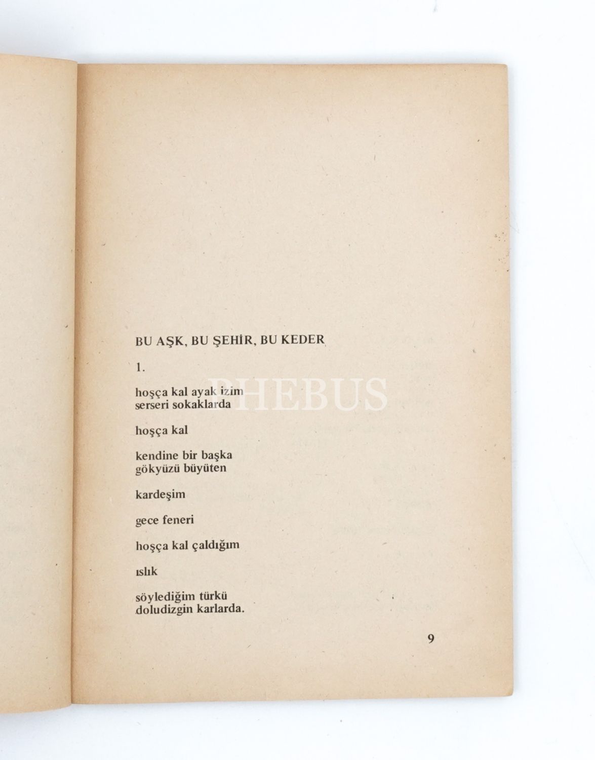 Sivas Madımak Otel`de yakılarak katledilen 37 candan biri olan Behçet Aysan`ın (1949 - 1993) Ceyhun Atuf Kansu Şiir Ödülü`nü kazanan kitabı... İthaf, "eylül`e eylülden bir Kastamonu gecesinde, Behçet Aysan 21.1.1989 Kastamonu" şeklindedir.