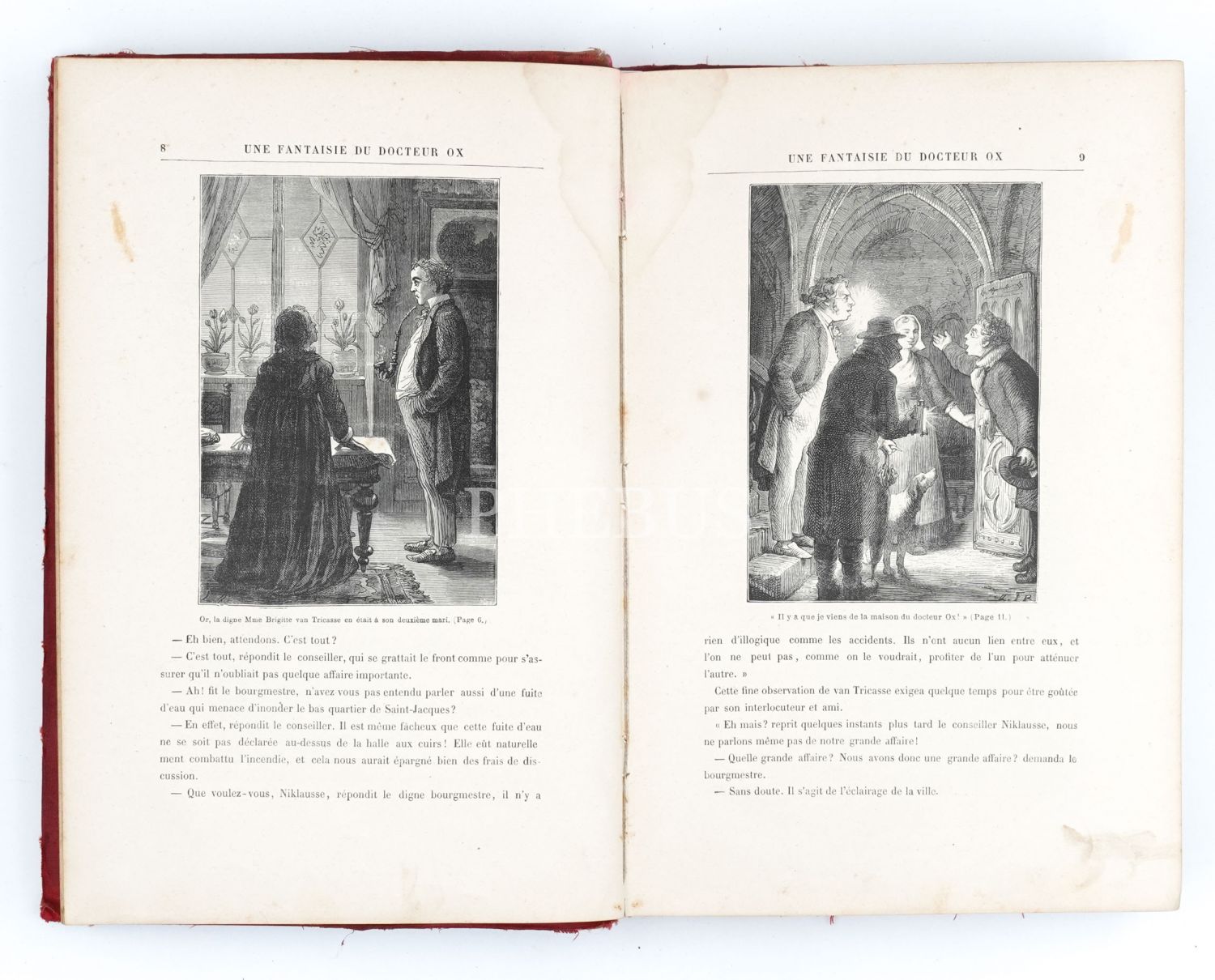 Jules Verne'in kısa öyküleri: Doktor Ox… Bertrand, Froelich, Th. Schuler, Bayard ve Marie'nin illüstrasyonları eşliğinde... Sayfa kenarları yaldızlı dönem cildinde... Ön kapağın üst kısmı hafif yıpranmıştır.