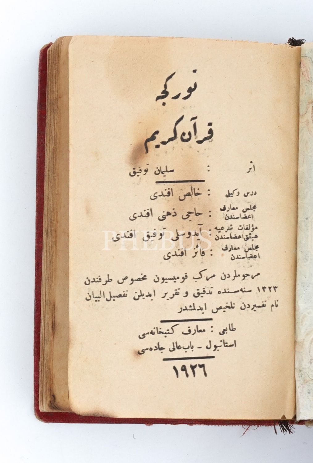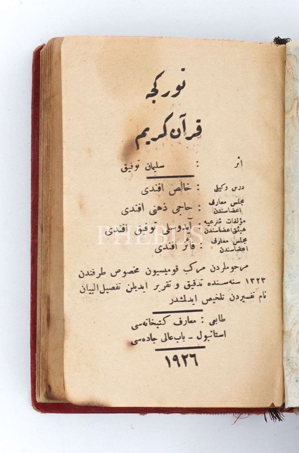 TÜRKÇE KUR`AN-I KERİM, 1926, İstanbul Maarif Kütüphanesi, 808 sayfa, 10x14 cm...