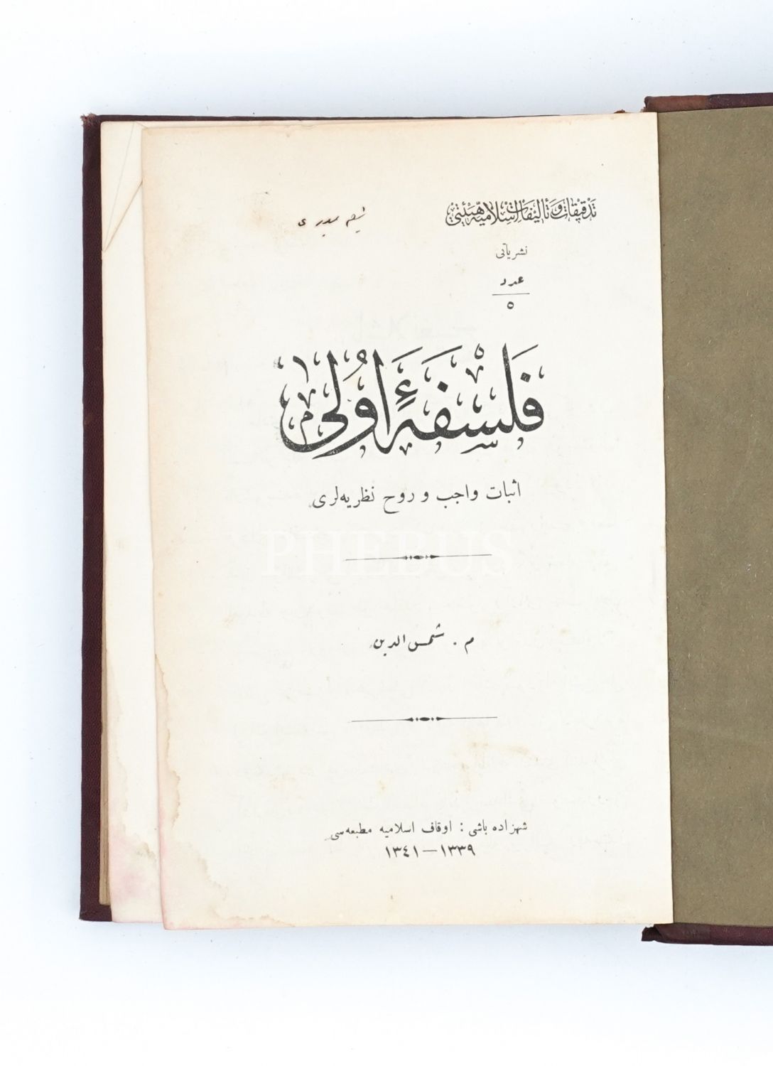 FELSEFE-İ ÛLÂ, Şemsettin Günaltay, 1339-1341, İstanbul Evkaf-ı İslamiye Matbaası, 552 sayfa, 14x20 cm...