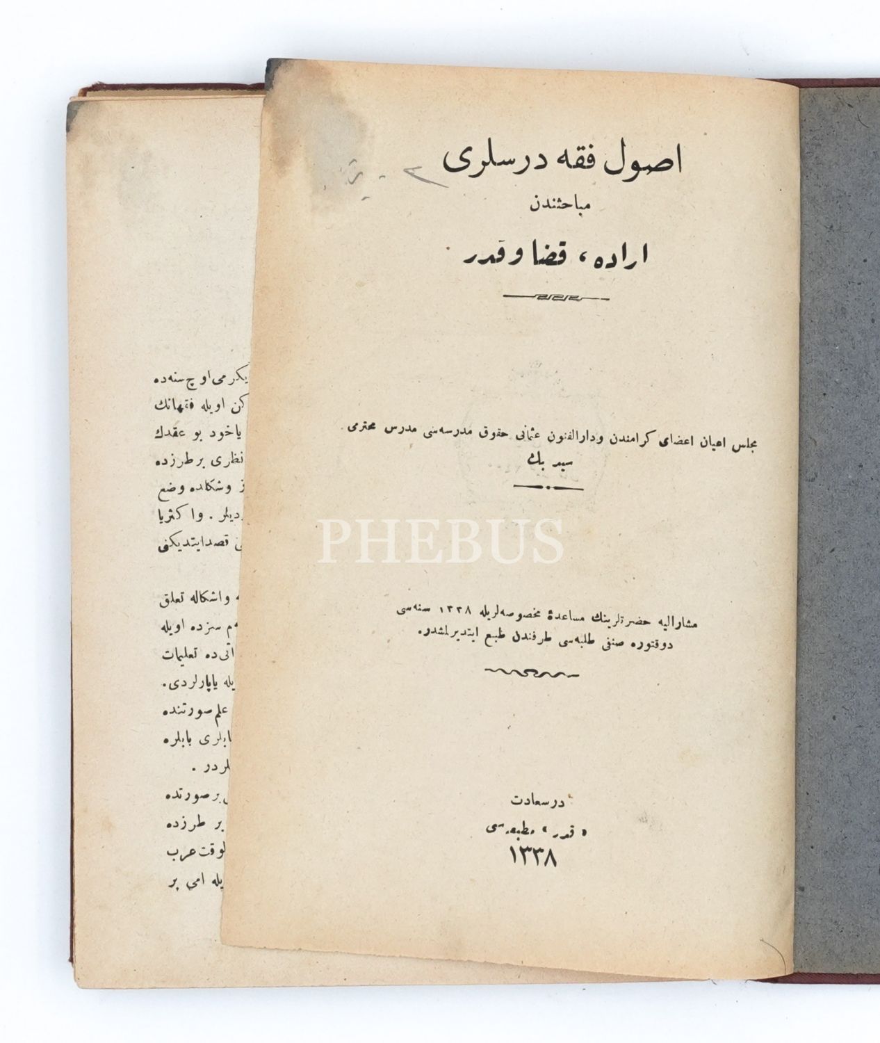 USUL-U FIKIH DERSLERİ MÜBAHİSİNDEN İRADE, KAZA VE KADER, Seyid Bey, 1338, İstanbul Kader Matbaası, 330 sayfa, 16x23 cm...