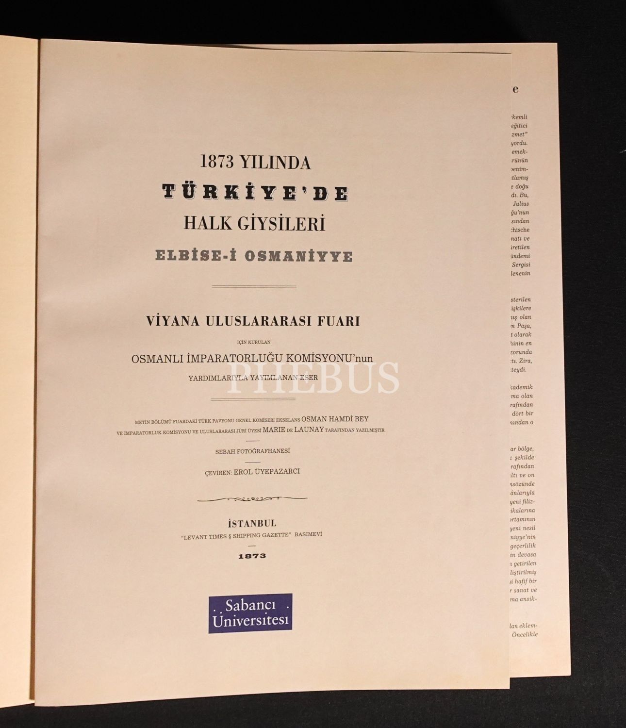 1873 YILINDA TÜRKİYE´DE HALK GİYSİLERİ (Elbise-i Osmaniyye), çeviren: Erol Üyepazarcı, 1999, İstanbul, Sabancı Üniversitesi, 461 sayfa, 28x36 cm...