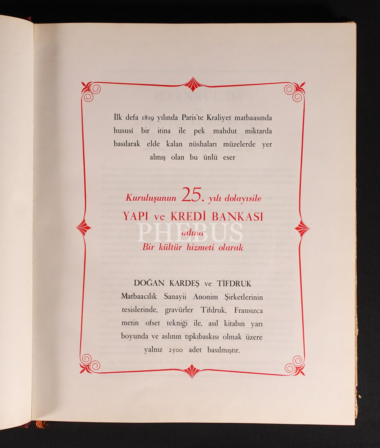VOYAGE PITTORESQUE DE COSTANTINOPLE ET DES RIVES DU BOSPHORE / İSTANBUL´DA VE BOĞAZİÇİ´NDE RESİMLERLE BİR GEZİNTİ, Tıpkıbaskıya nezaret eden: Şevket Rado, 1969, İstanbul, Yapı ve Kredi Yayınları, 34x43 cm...