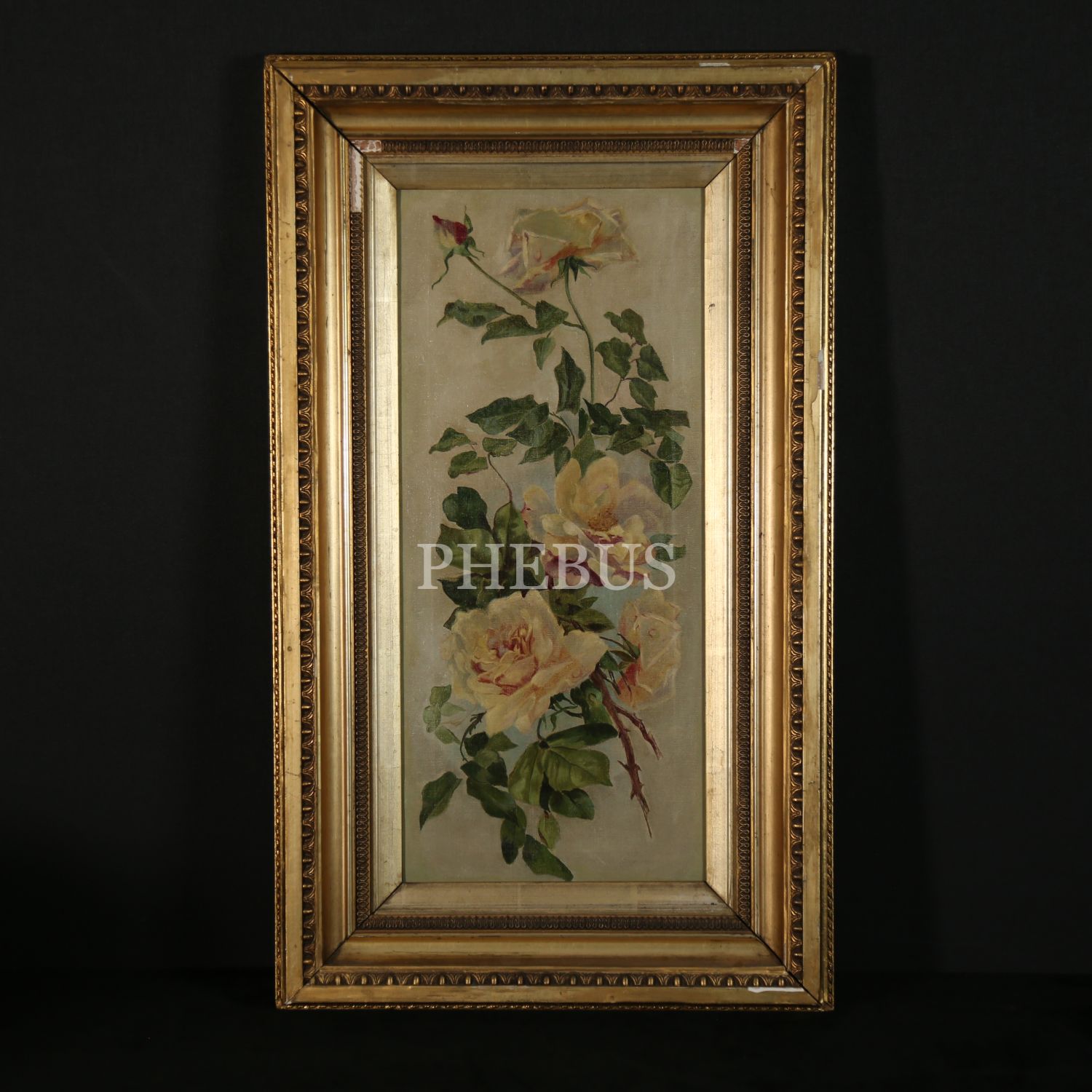 Tuval üzerine yağlıboya çiçek çalışması, çerçevesiyle birlikte 44x74 cm...
