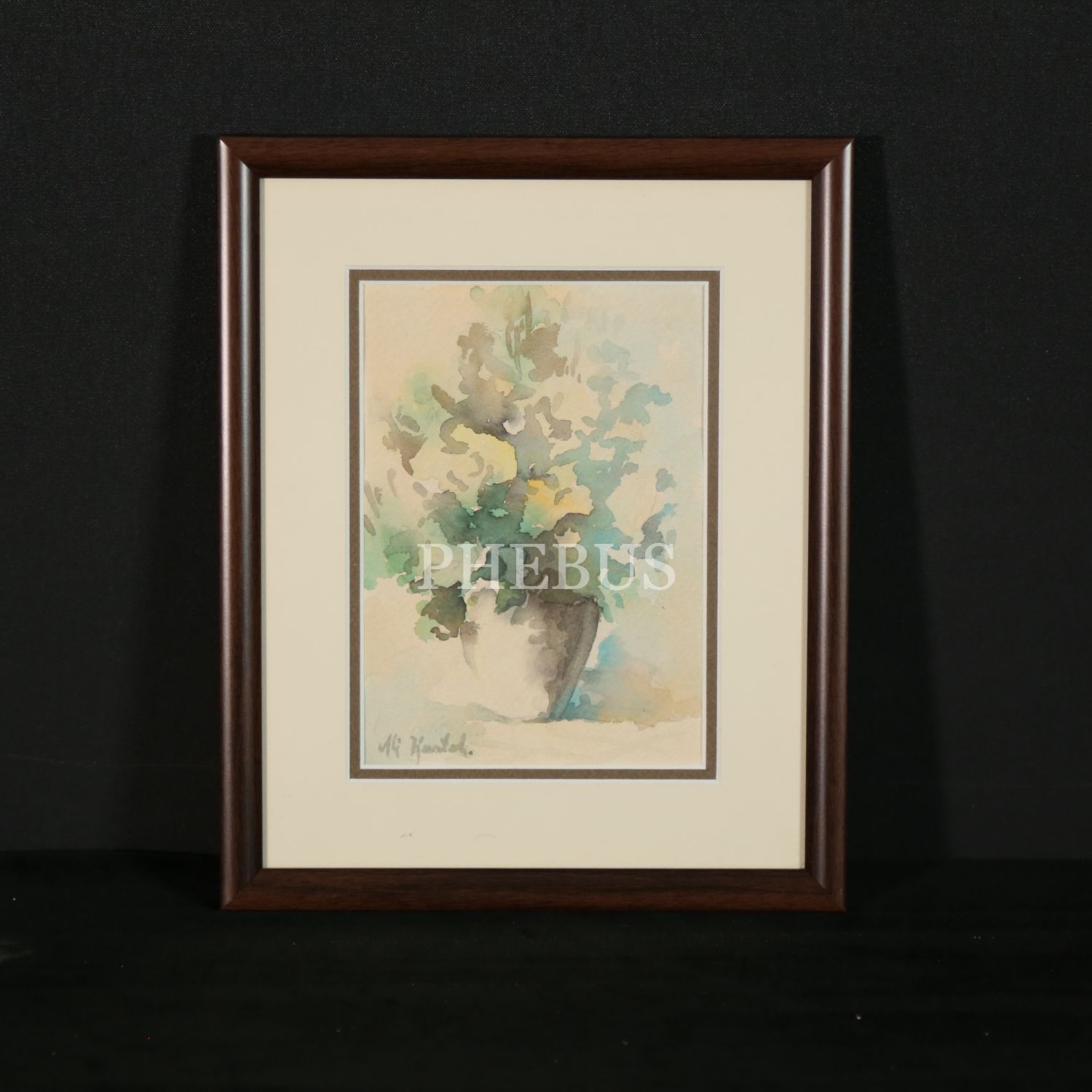Ali Kartal imzalı suluboya çiçek çalışması, çerçevesiyle birlikte 22x28 cm...