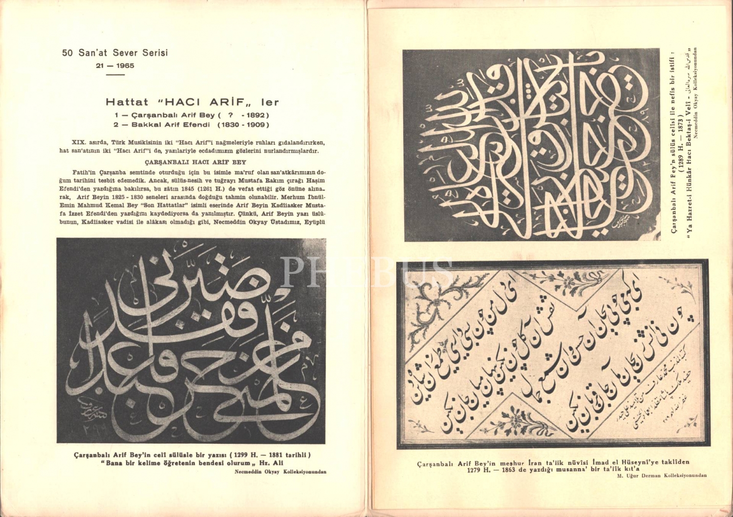 50 Sanat Sever Serisi´nin "HATTAT HACİ ARİFLER" başlıklı 1965 tarihli 21. sayısı, M. Uğur Derman, Kemal Matbaası, 6 sayfa, 18x25 cm...