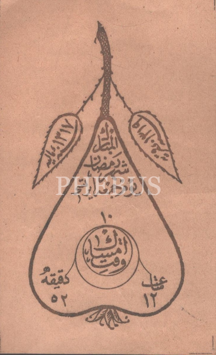 Ramazan´ın 10. gününe ait imsak vaktini belirten, armudî formda tasarlanmış takvim yaprağı, 6x10 cm...