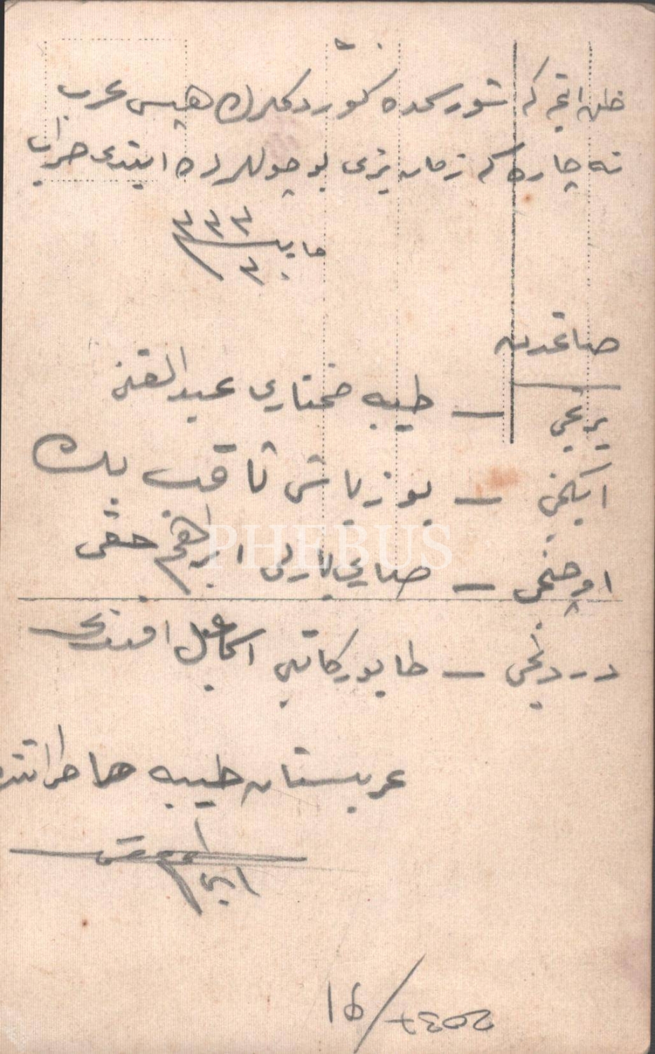 Fotoğrafın arka yüzünde, Osmanlıca "Zannetme ki şu resimde gördüklerinin hepsi Arap/ Ne çare ki zaman bii bu çöllerde etti harap" mısraları yer almaktadır. Fotoğrafta yer alanlar; Tayiba Muhtarı Abdulkadir, Yüzbaşı Sakıp Bey, Sarıyerli İbrahim Hakkı ve Tabur Katibi Kamil Efendi.