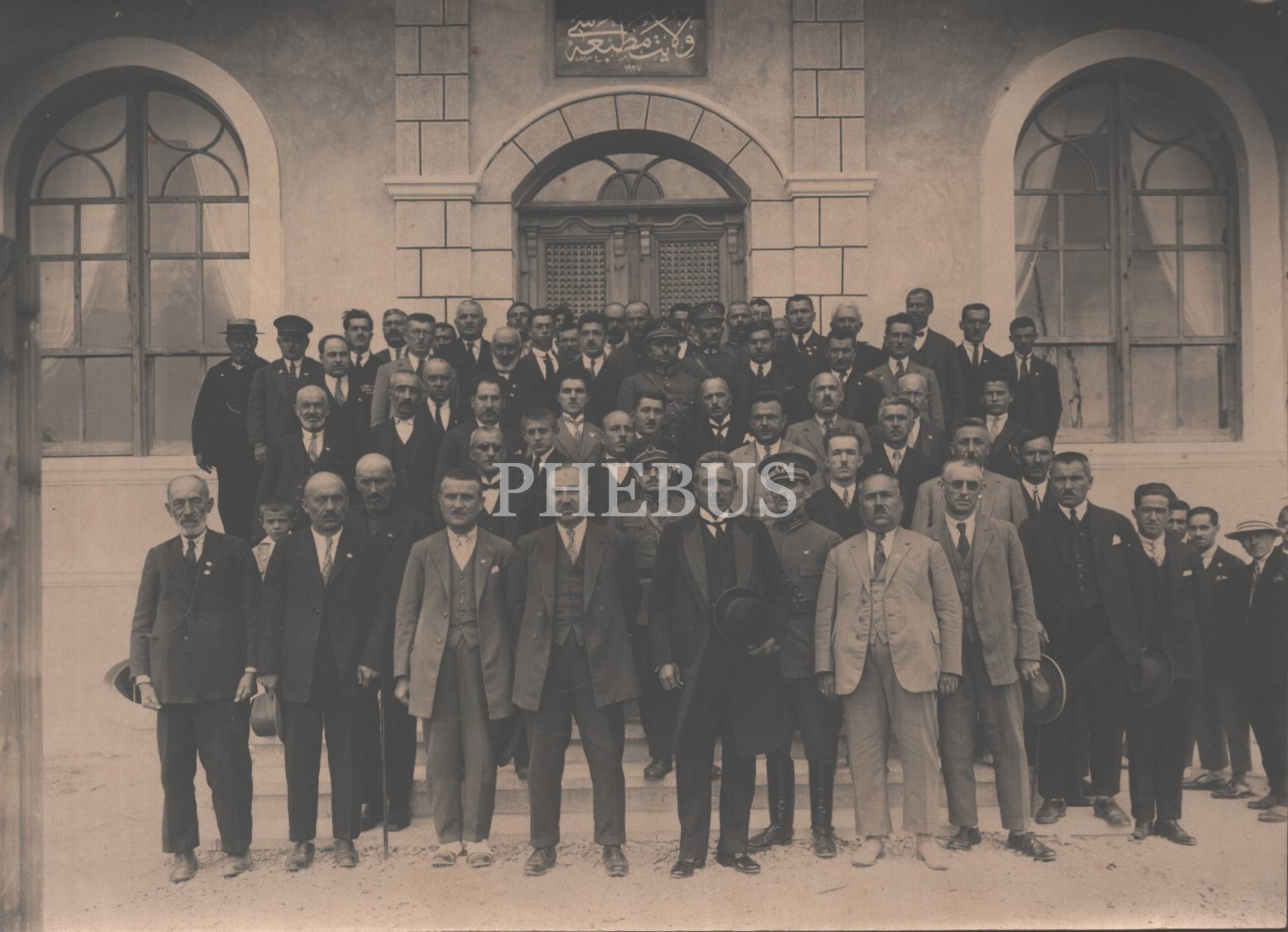 Vilayet Matbaası önünde devlet erkanından ve askerlerden oluşan heyetin hatıra fotoğrafı, 24x17 cm...