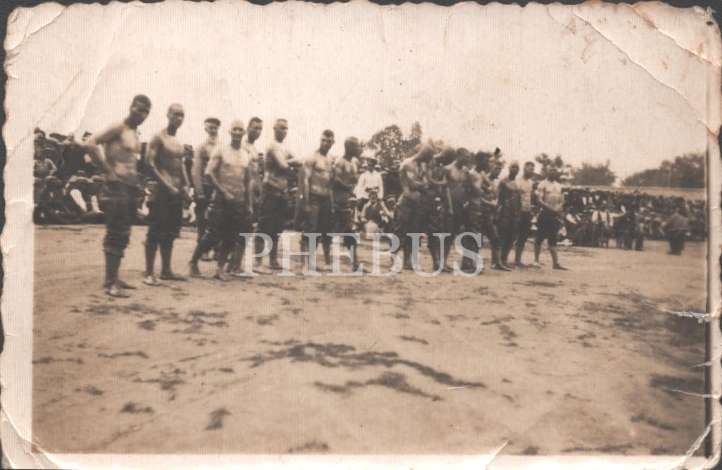 Yağlı güreş müsabakasında boy gösteren güreşçilerin fotoğrafı, 9x6 cm...