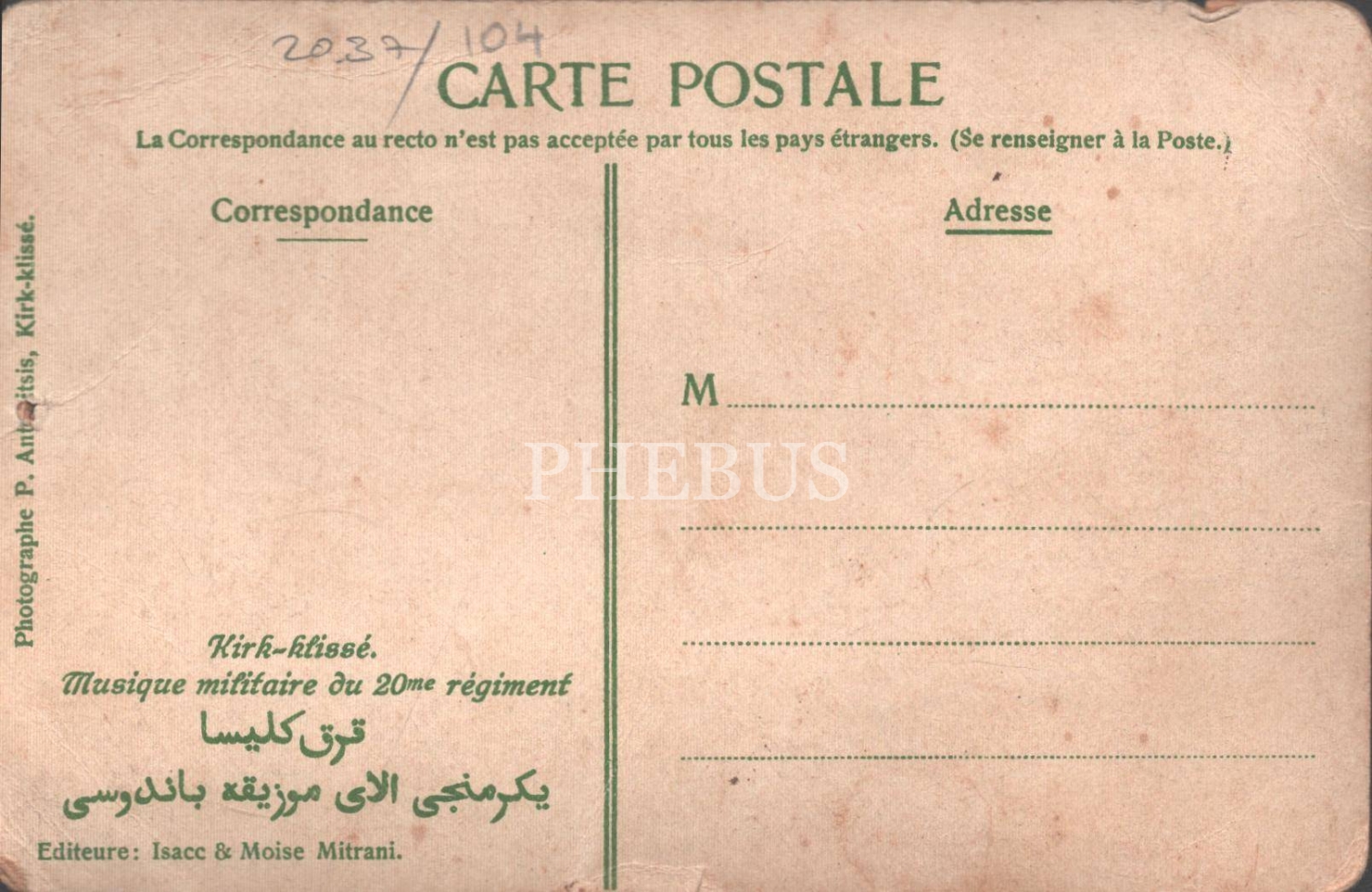 Kırk Kilise 20. Alay Mızıka Bandosu, ed.: Isaac & Moise Mitrani, 14x9 cm...
