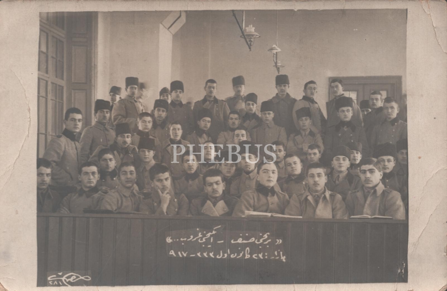 1. Sınıf 2. Grup Harp Okulu öğrencilerinin 23 Kanunievvel 1333 tarihli hatıra fotoğrafı, 14x9 cm...