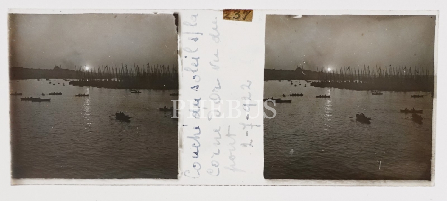 2 Temmuz 1923 tarihinde Haliç´te gün batımı manzarasının görüldüğü streoview formunda pozitif cam, 11x4 cm...