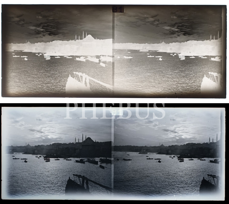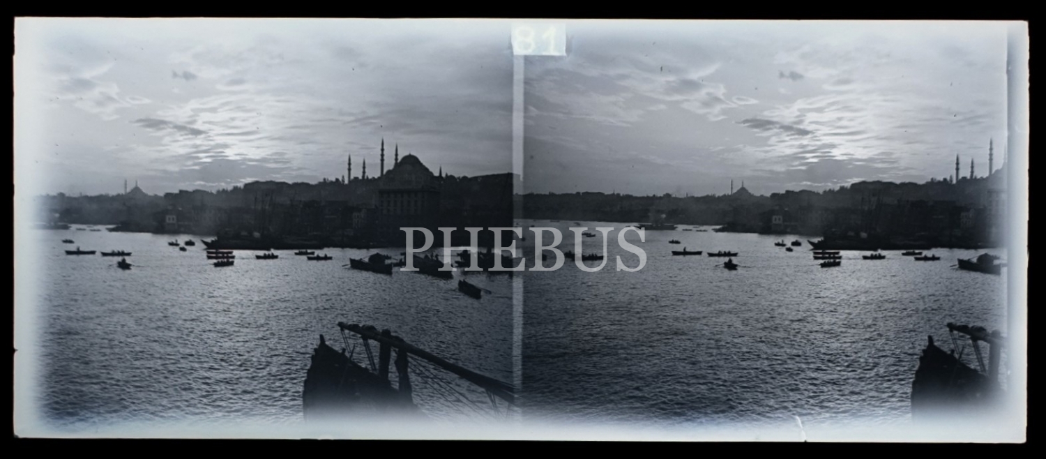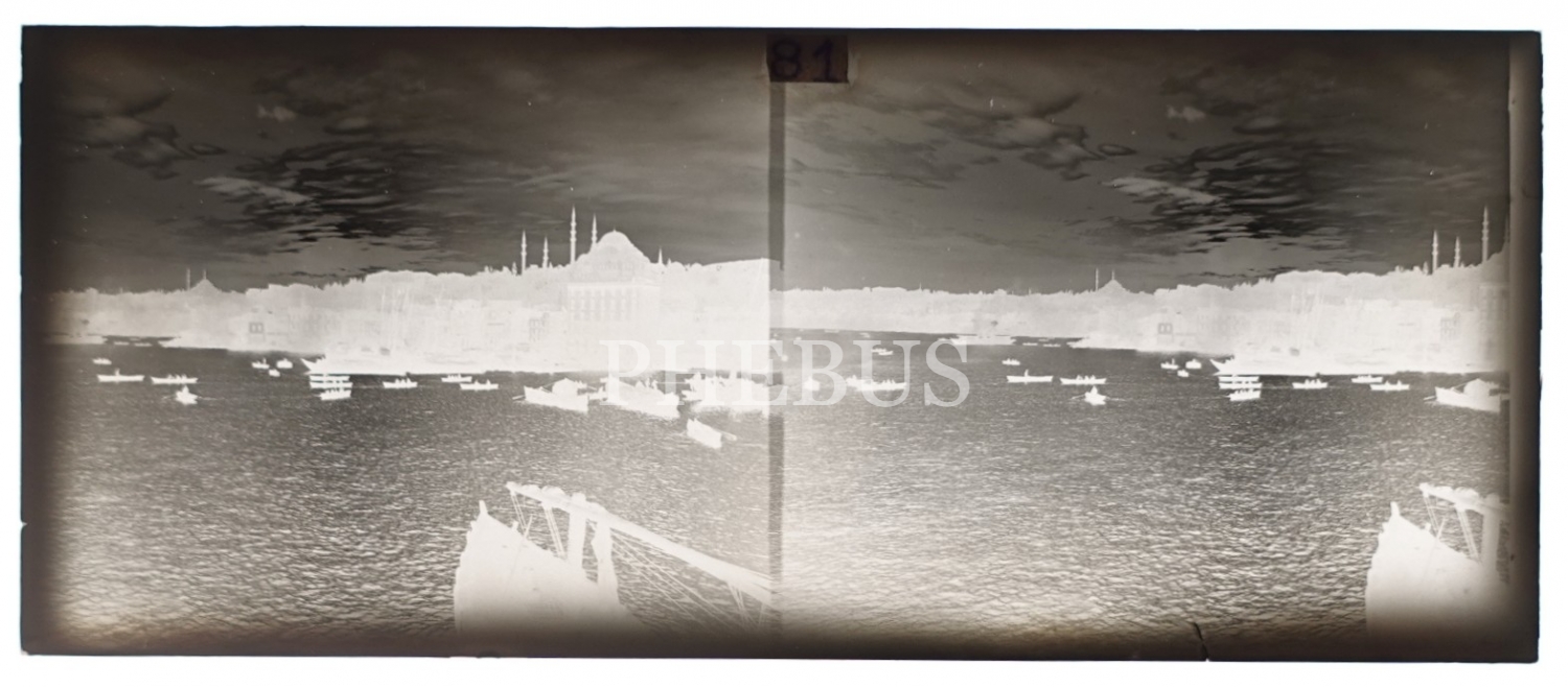 Haliç'ten Süleymaniye Camii'nin göründüğü streoview formunda cam negatif, 11x4 cm...