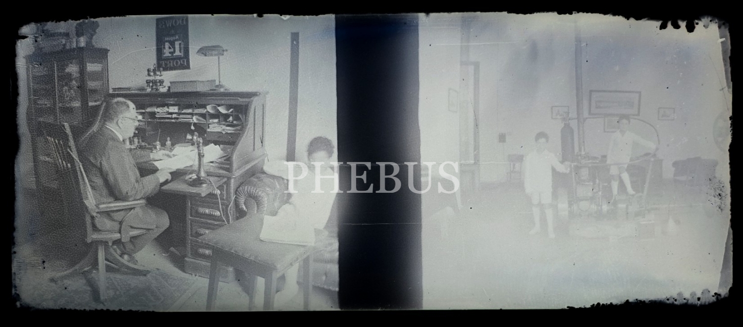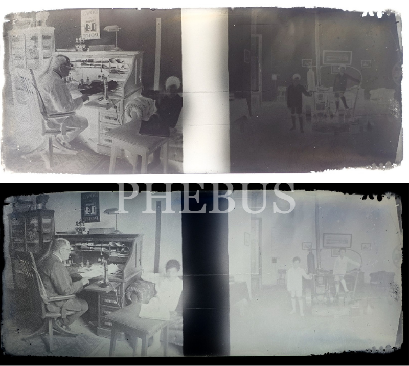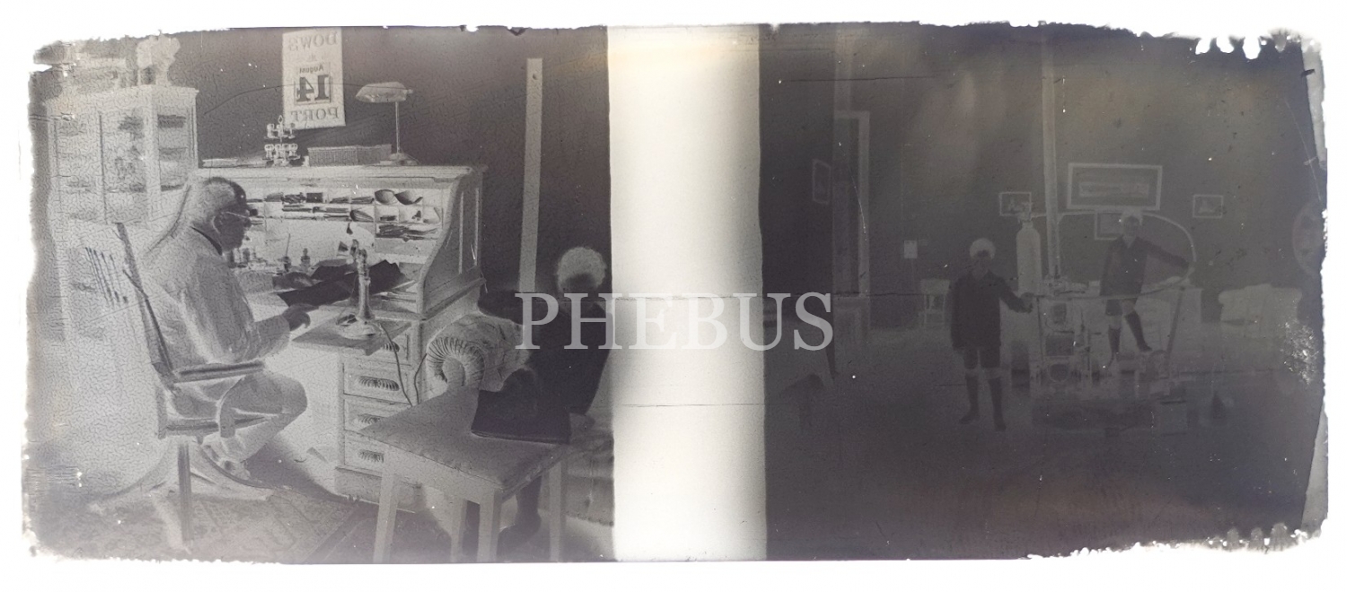 Masa başında çalışan bir beyefendinin görüldüğü cam negatif, 11x4 cm...