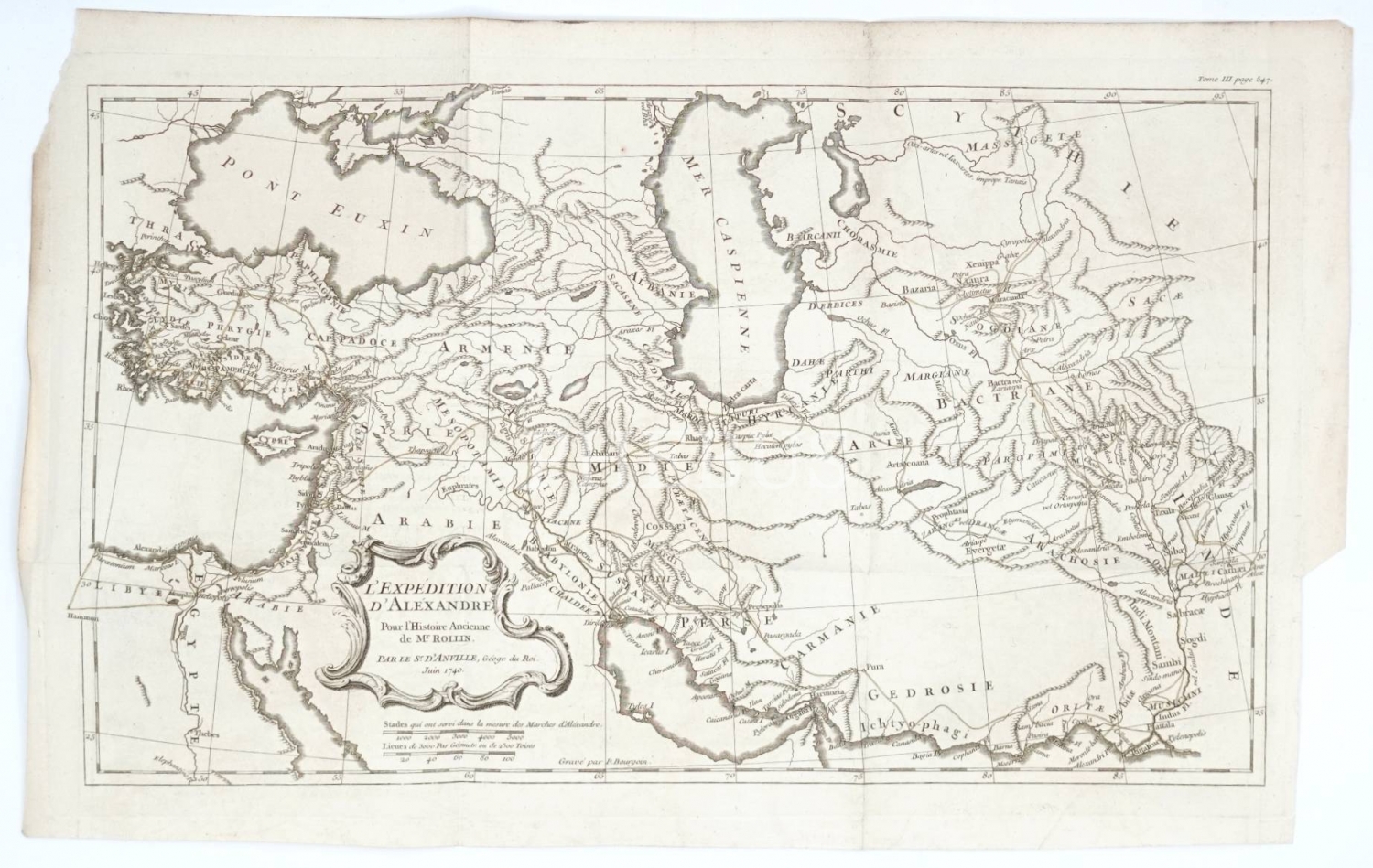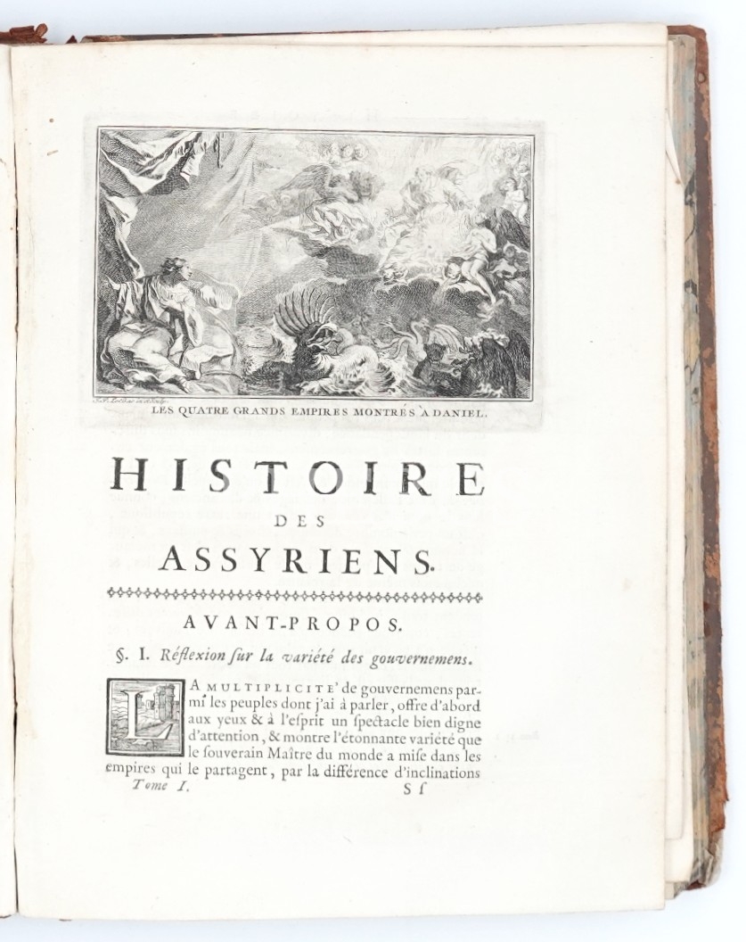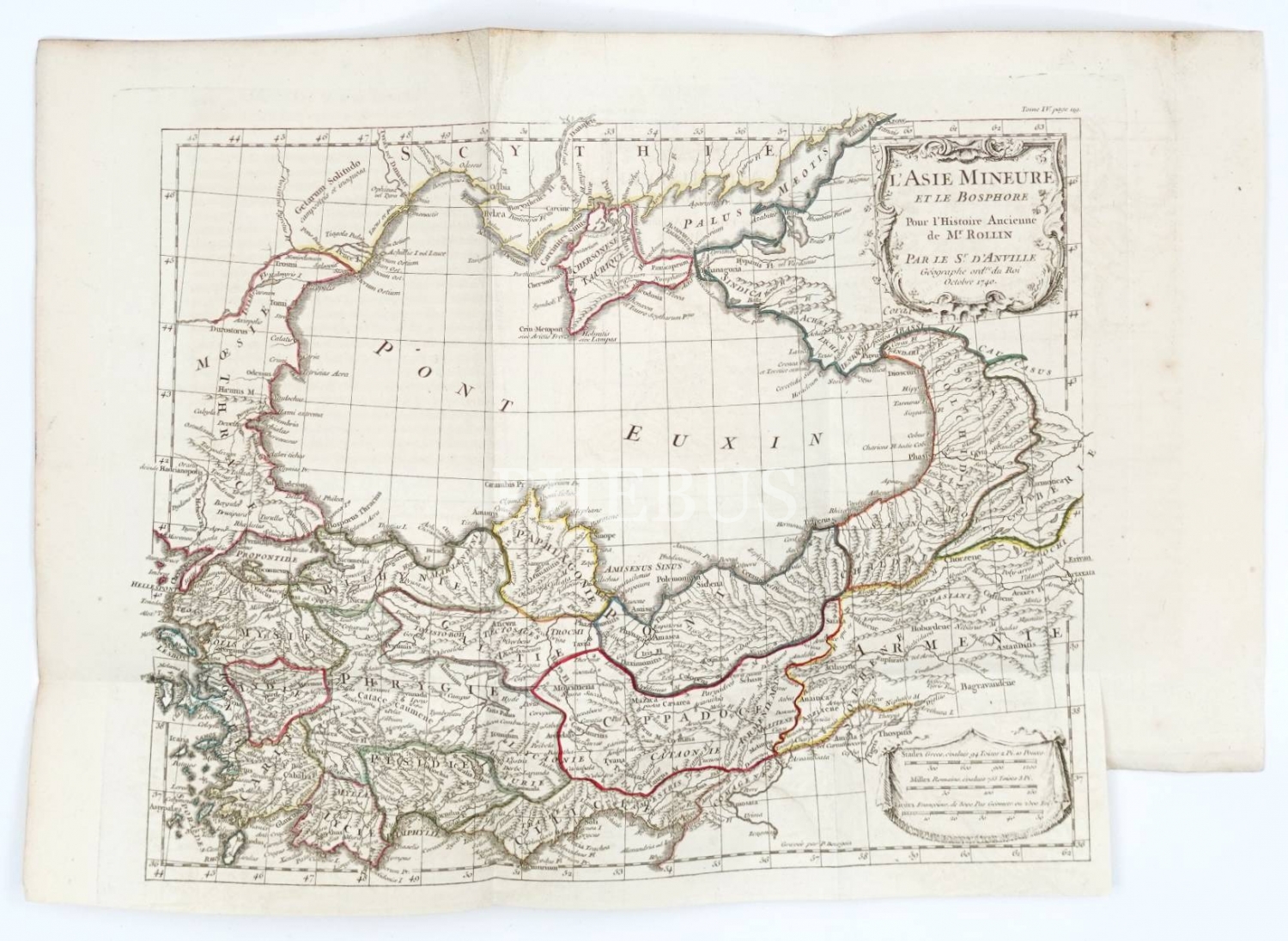 Fransız tarihçi ve eğitimci Charles Rollin (1661-1741) tarafından kaleme alınan ve antik medeniyetlere kapsamlı bir bakış sunan "Antik Tarih" çalışmasının ilk üç cildi... Eserde renkli ve renksiz çok sayıda katlanır levha mevcuttur (Cilt 1: 5 harita, cilt 2: biri Anadolu olmak üzere 2 harita, cilt 3: biri Anadolu olmak üzere 2 harita). Sayfa kenarları ve iç kapakları ebrulu, sırtı yaldız süslemeli orijinal deri cildinde. *Ciltler yıpranmıştır.
