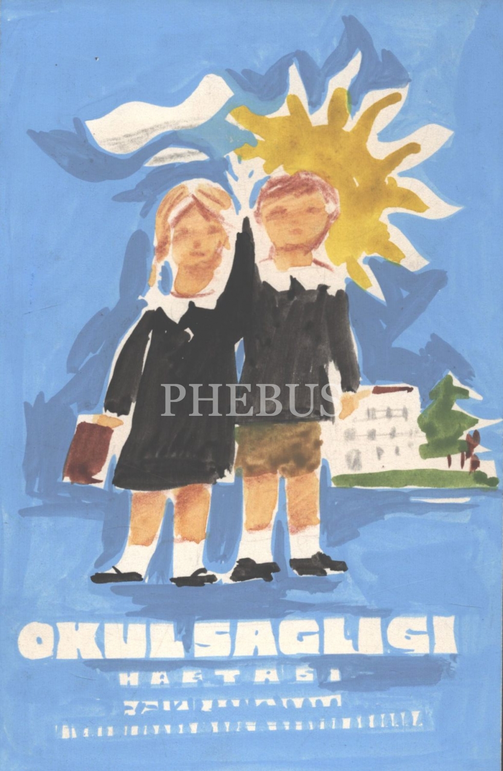 Ünlü grafiker Gülümser Aral´dan Okul Sağlığı Haftası çizimi, 10x15 cm...