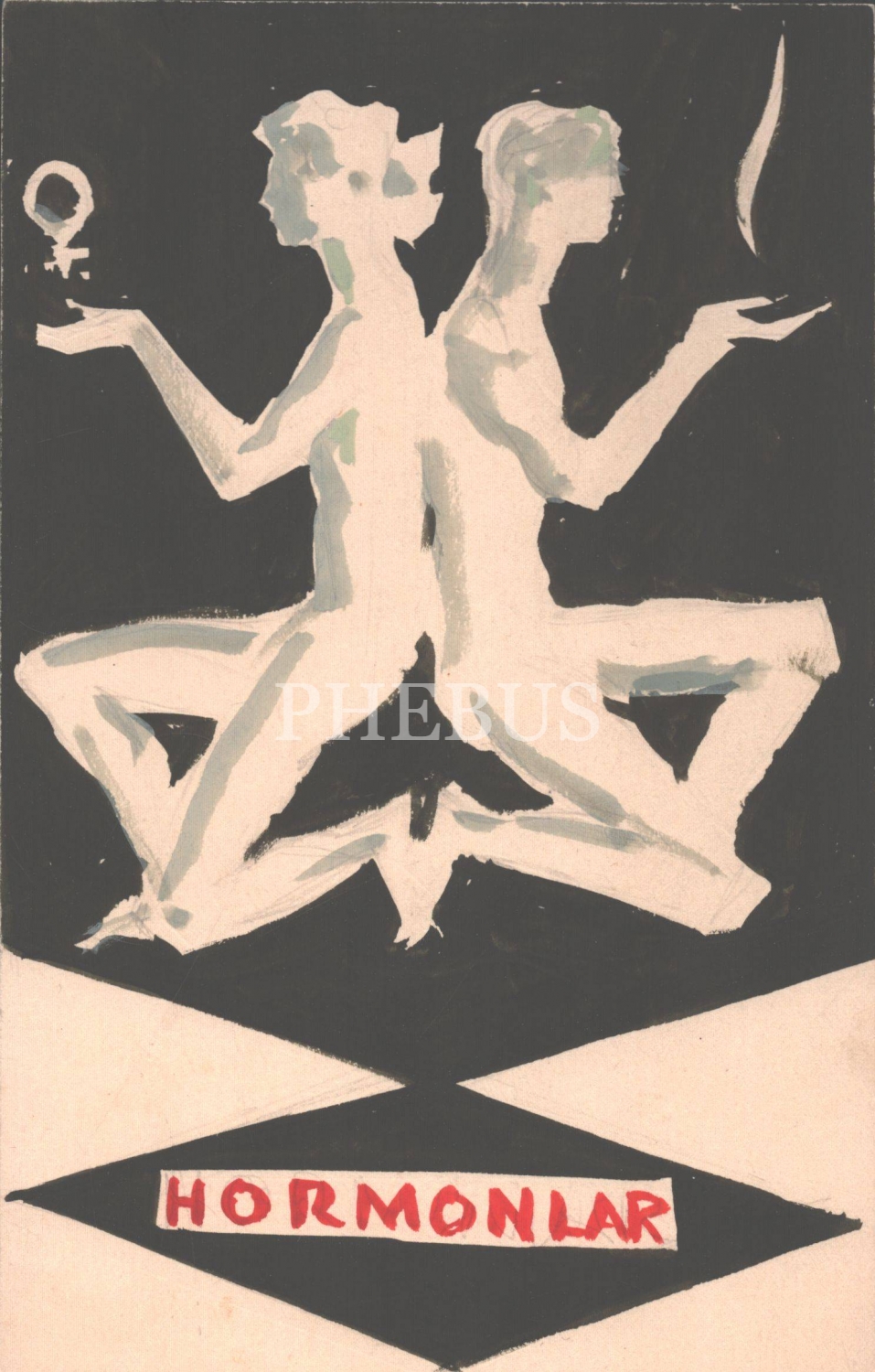 Ünlü grafiker Gülümser Aral´dan hormonlar çizimi, 12x19 cm...