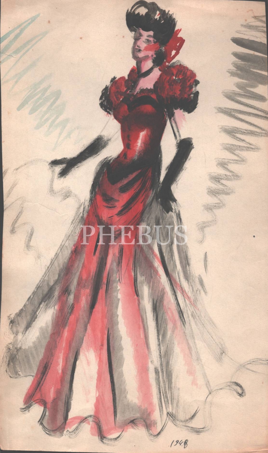 Ünlü grafiker Gülümser Aral´dan gece kıyafeti çizimi, 18x30 cm...