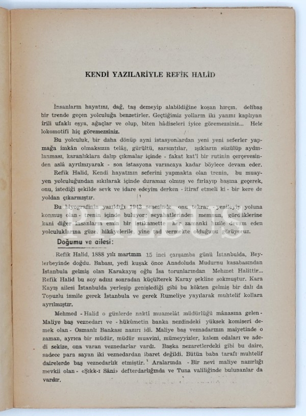 KENDİ YAZILARI İLE REFİK HALİD, Hikmet Münir Ebci, Semih Lûtfi Kitabevi (Semih Lûtfi Erciyas), 91 sayfa, 17x23 cm...