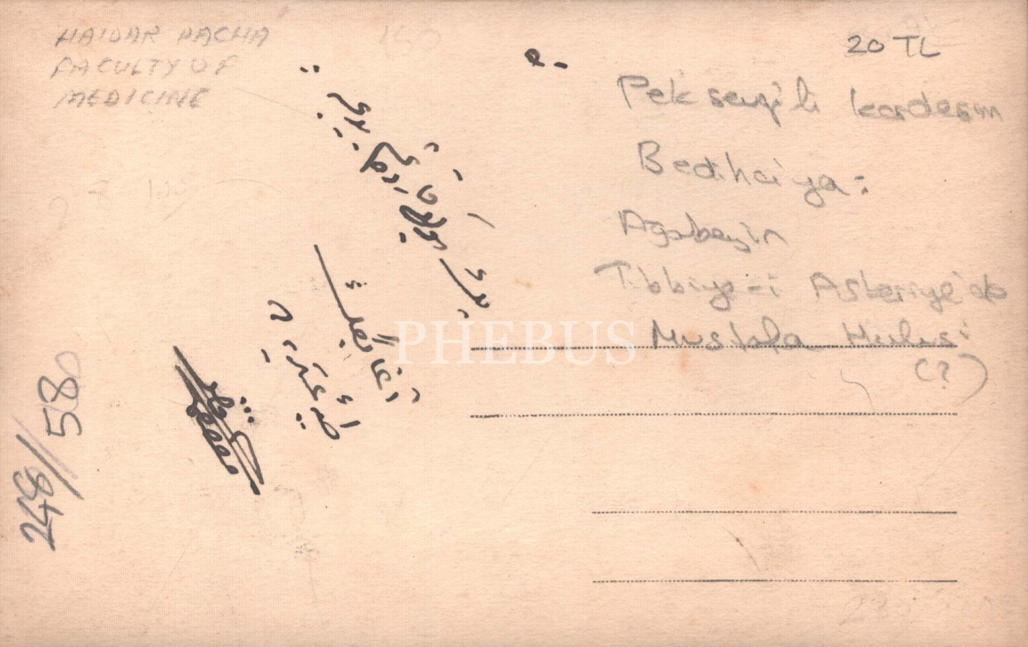 Fotoğrafın arka yüzünde yer alan Osmanlıca ithaf, "Pek sevgili kardeşim Bediha´ya: Ağabey´in Tıbbiye-i Askeriye´de" şeklindedir.