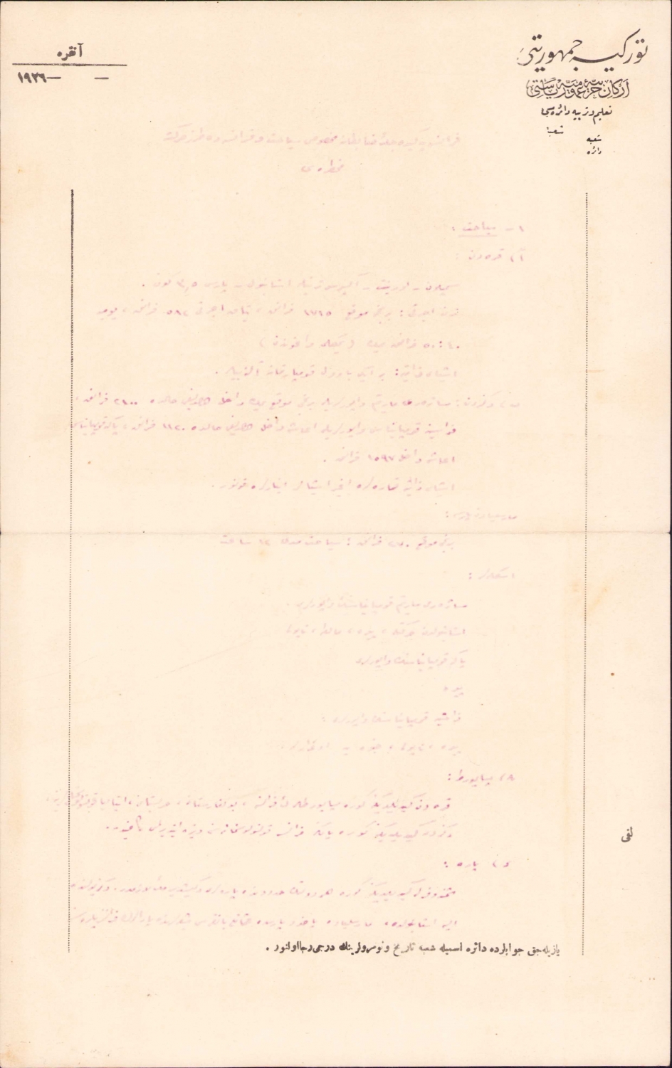 Osmanlıca Türkiye Cumhuriyeti Erkan-ı Harbiye Umumiye Riyaseti Talim ve Terbiye dairesi antetli evrak, Ankara, 1926, 21x33 cm