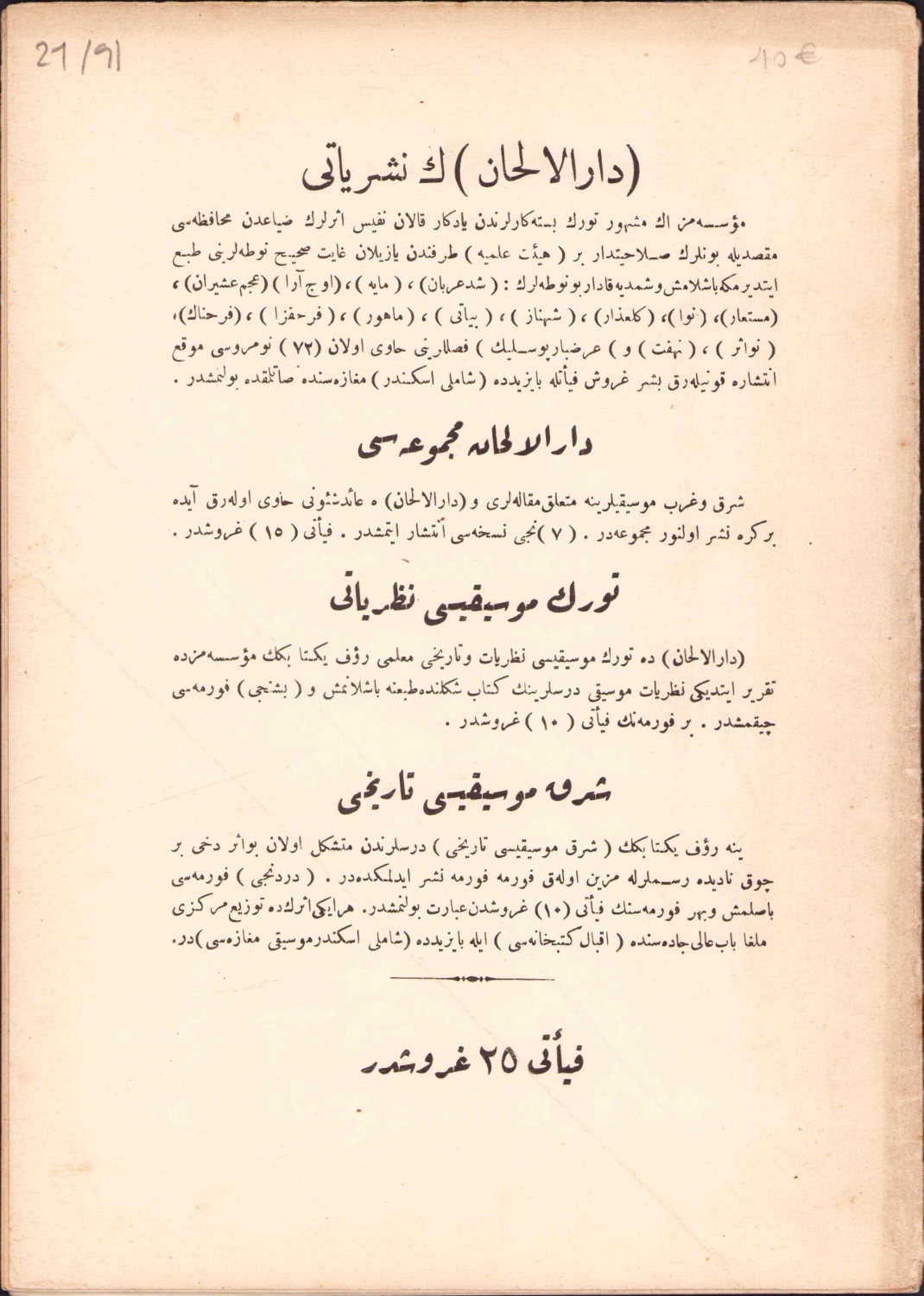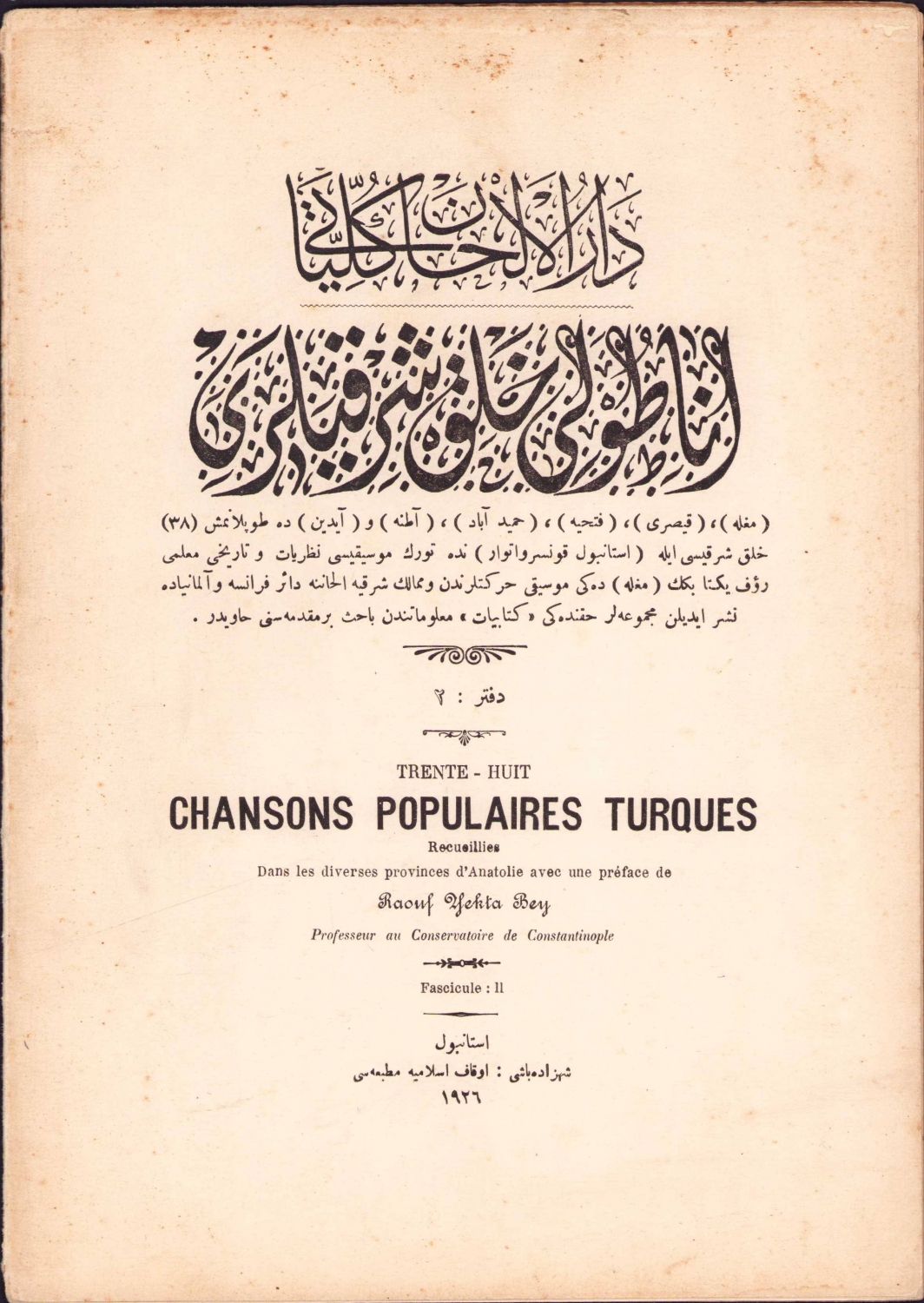 Osmanlı müzik, nota, Darülelhan Külliyatı, Anadolu Halk Şarkıları, İstanbul, 1926, 48 sayfa, 20x28 cm