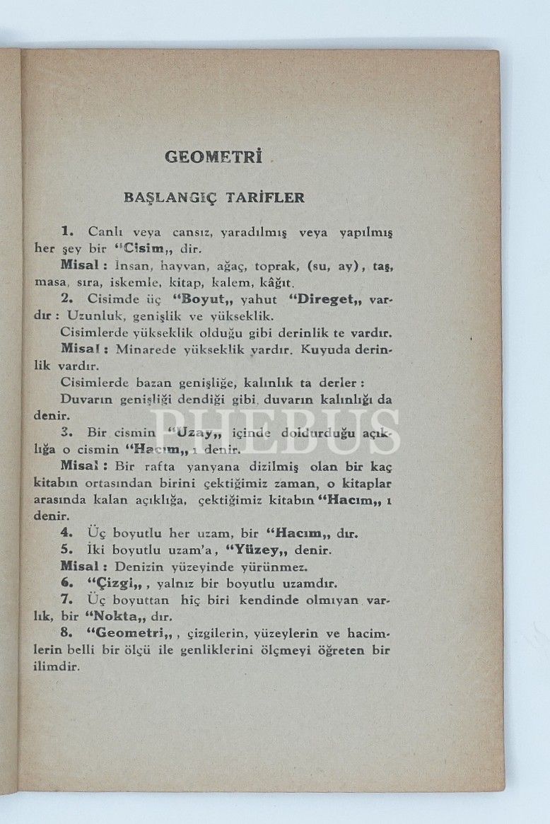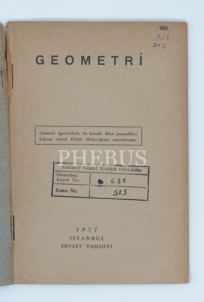 "Geometri öğretenlerle, bu konuda kitap yazacaklara kılavuz olarak Kültür Bakanlığınca neşredilmiştir."