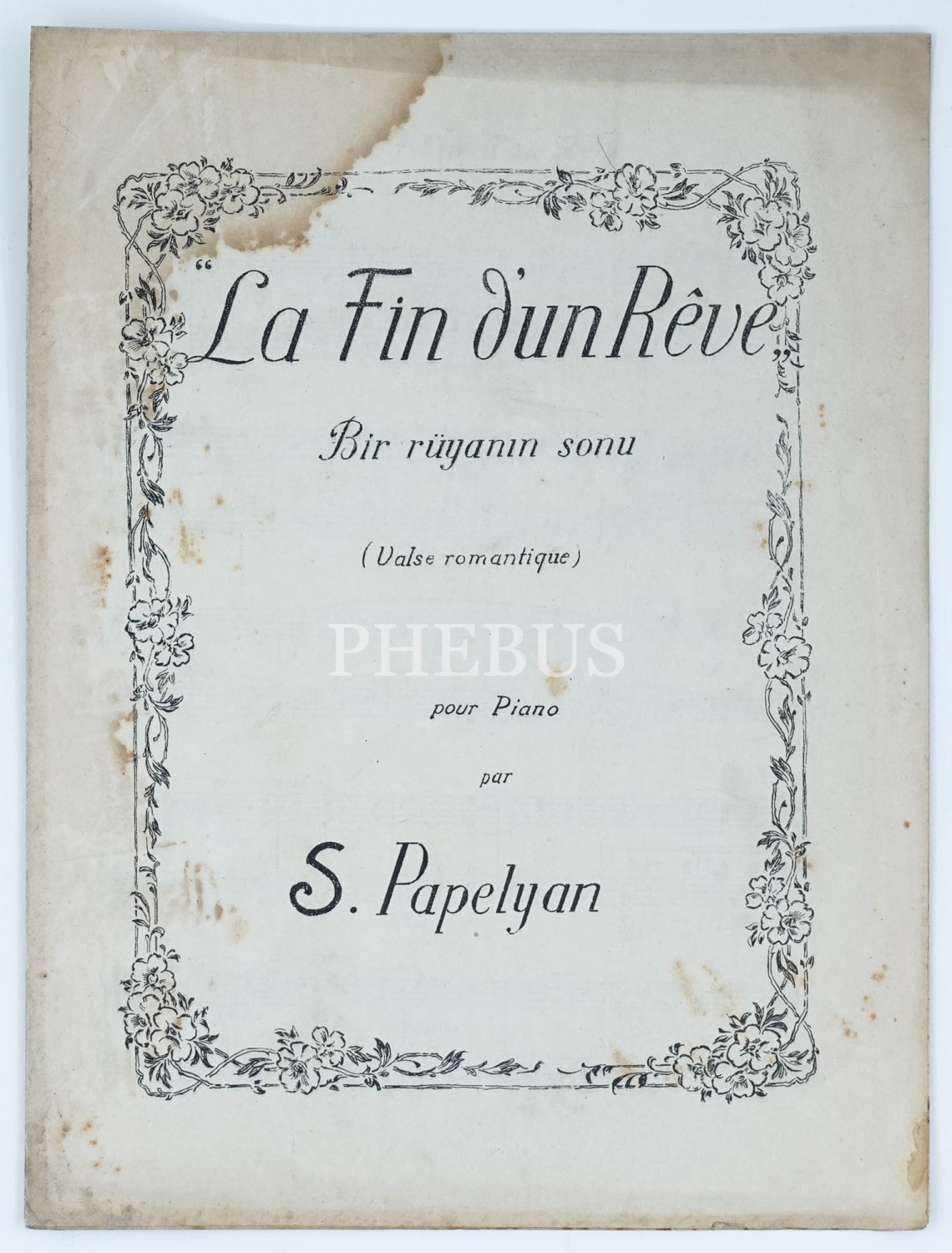 Besteci Stepan Papelyan´ın "LA FİN D´UN REVE" (Bir Rüyanın Sonu) adlı eserinin nota defteri, 24x31 cm...