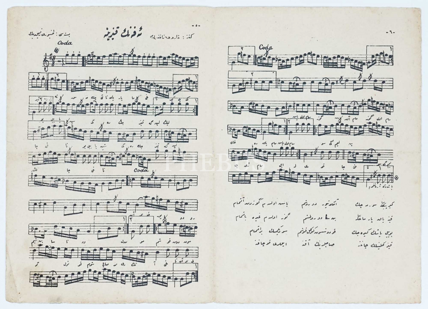 Tanburi-i Şehir Refik Beyefendi´nin "Türk´ün Sadası" adlı eserinin nota defteri, 15x21 cm...