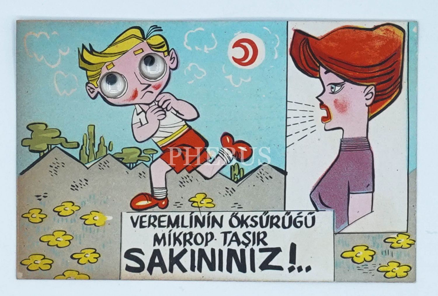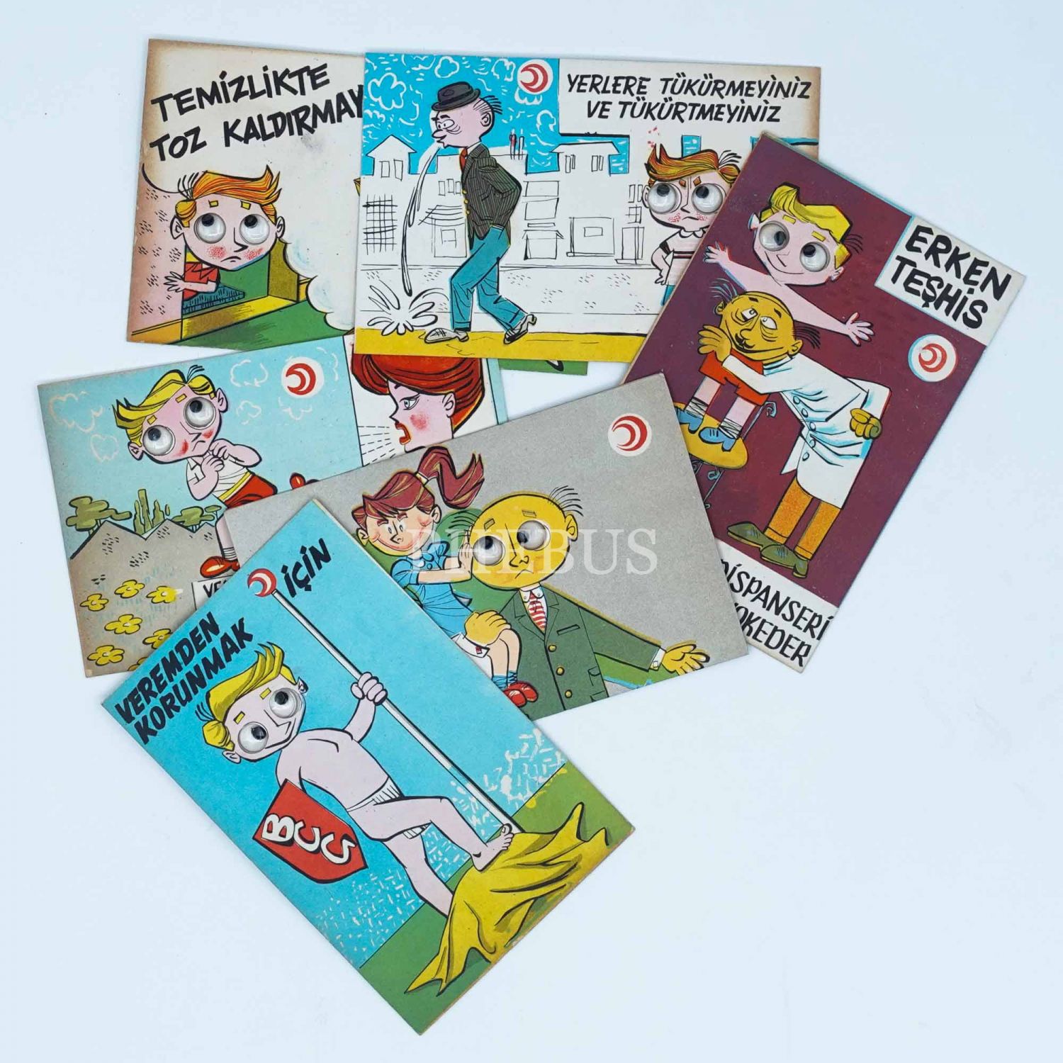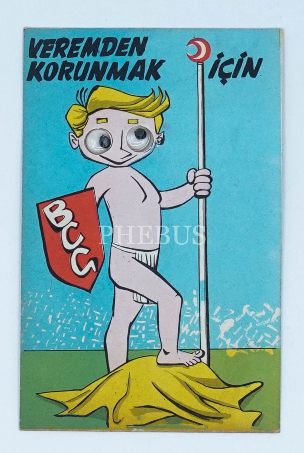 Türkiye Ulusal Verem Savaşı Derneği´nin yayımladığı gözleri oynayan figürlü 6 adet kart, 13x9 cm...