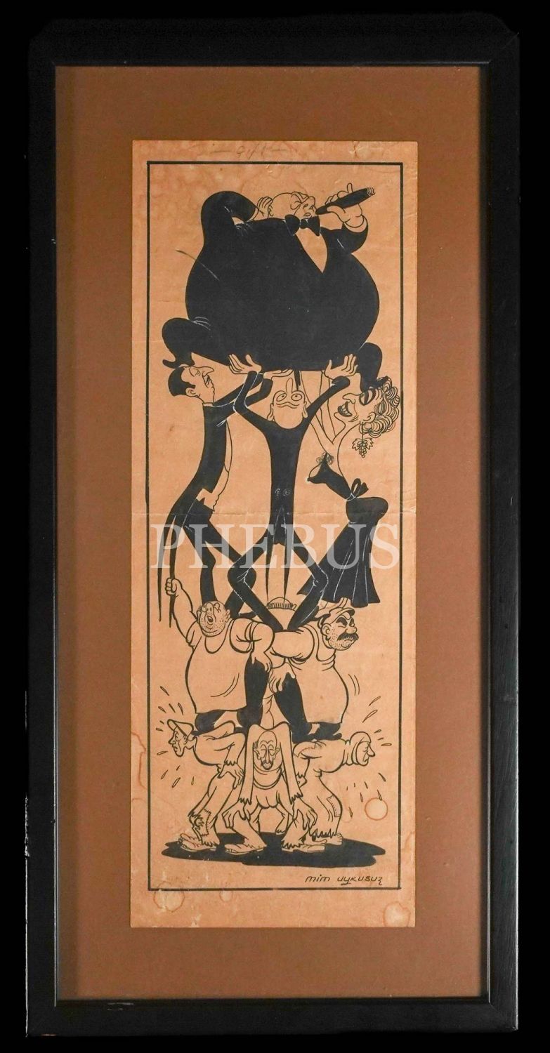 Mustafa (Mim) Uykusuz´dan imzalı çizim, çerçevesinde, 30x61 cm...