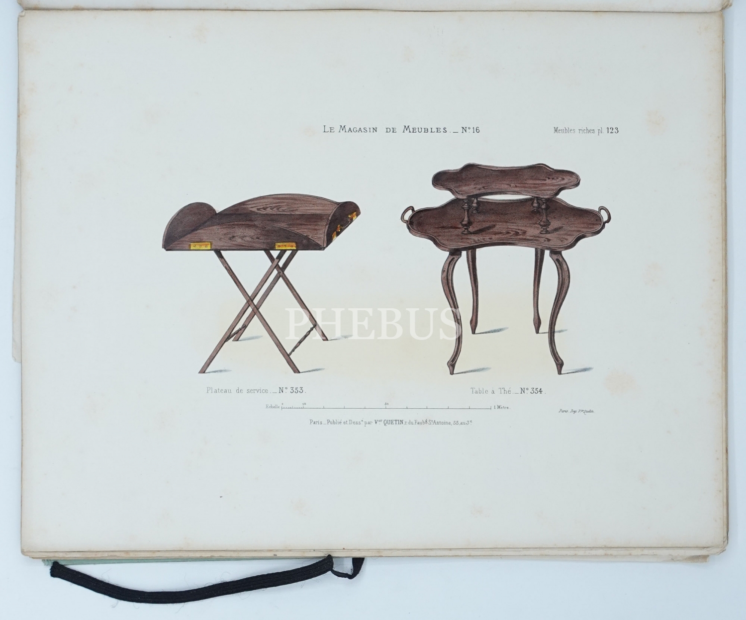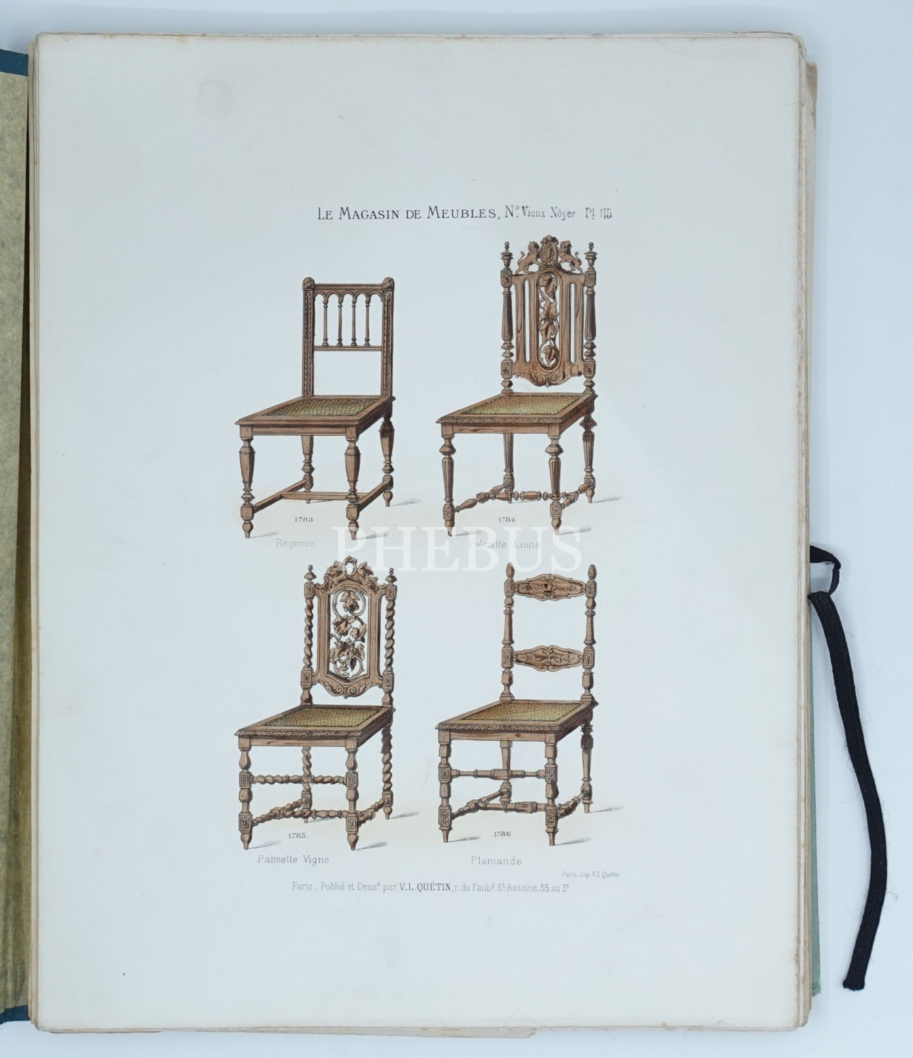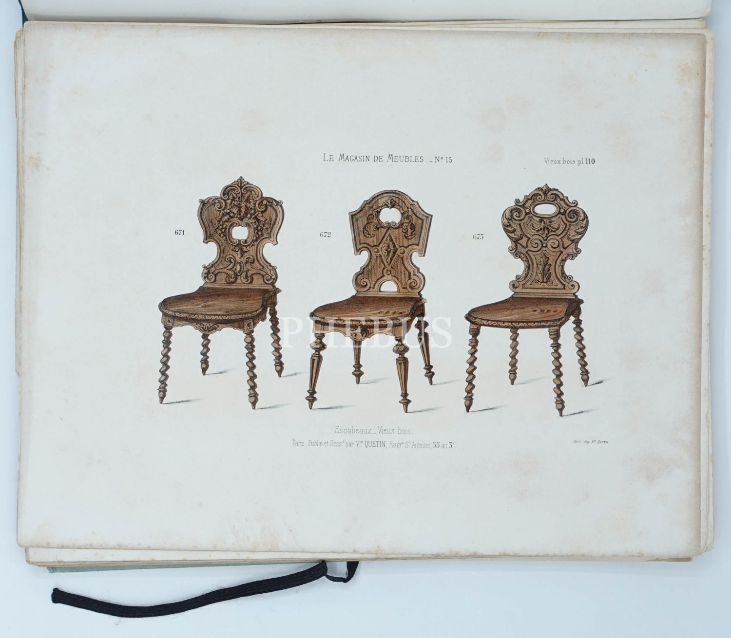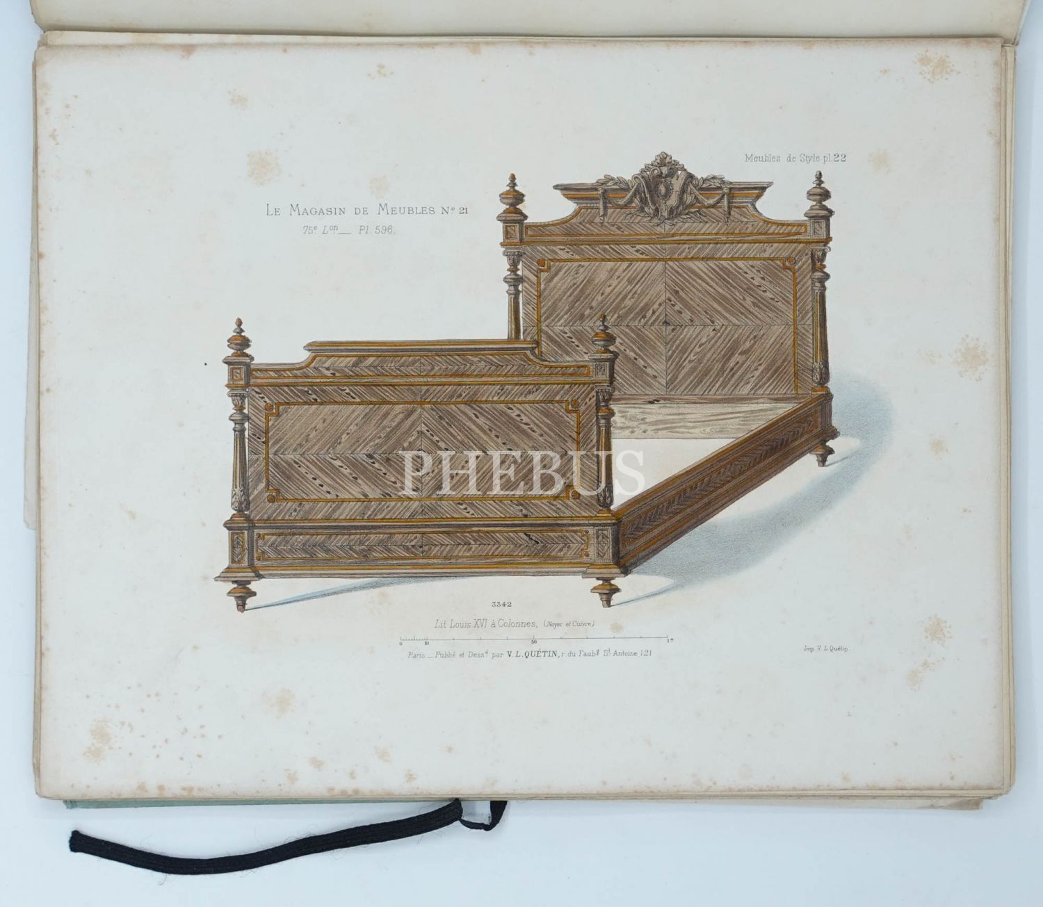 Elle renklendirilmiş 49 adet mobilya gravüründen oluşan katalog "LE MAGASIN DE MEUBLES", 29x36 cm...