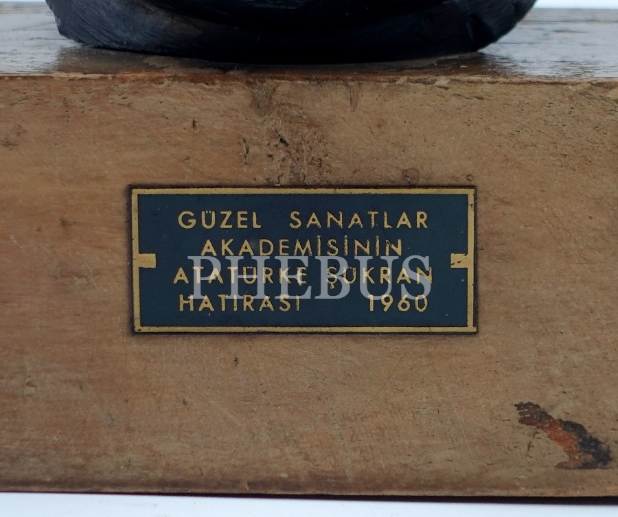 Bronz Mustafa Kemal ATATÜRK büst´ü, ahşap kaidesinde, güzel sanatlar akademisi tarafından kenan yontunç´ a yaptırılmıştır, 18x9x6 cm...