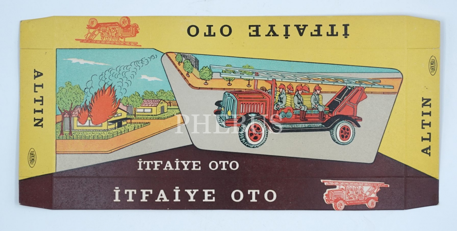 Altın marka, İtfaiye oyuncağına ait kutu kapağı, 38x18 cm...