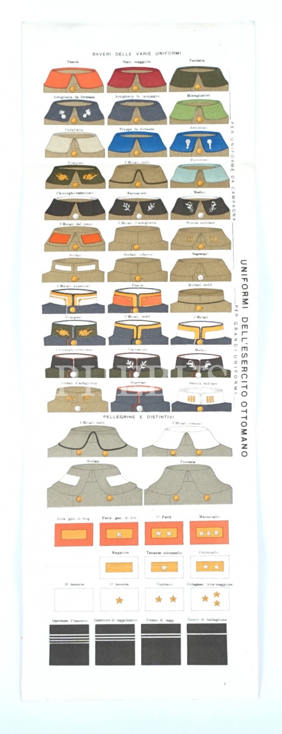 Osmanlı Askeri yaka rütbelerini gösteren afiş, 51x18 cm...