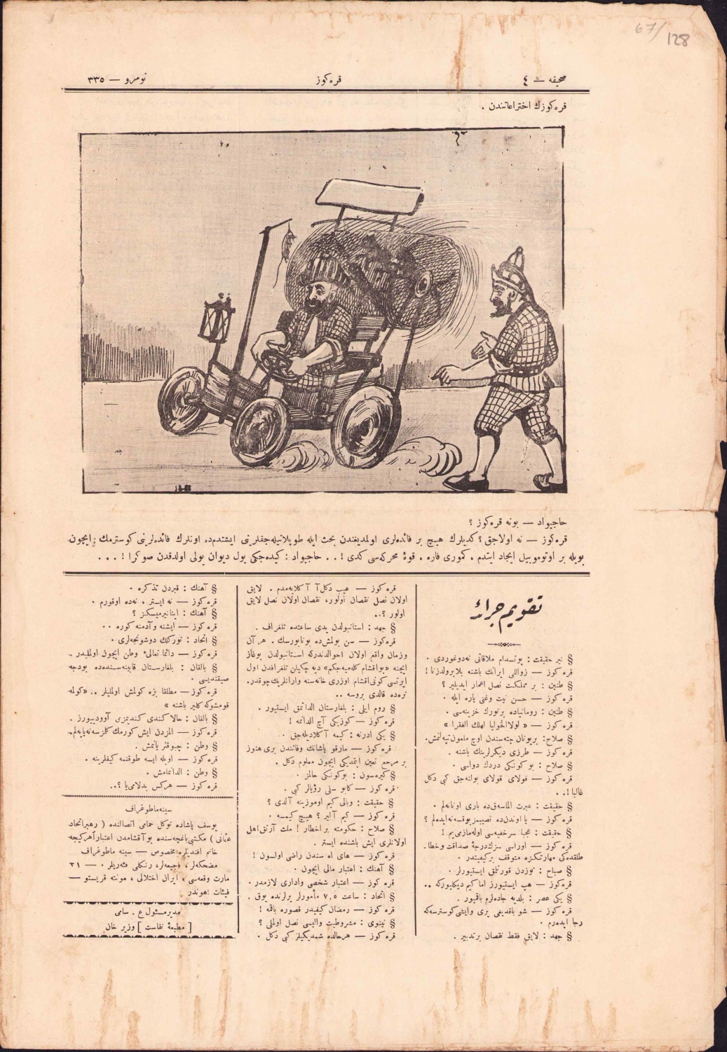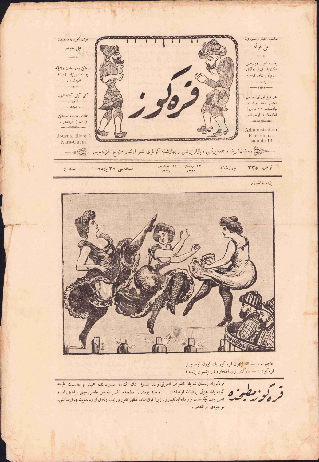 Osmanlıca 1327 tarihli 'Karagöz' Mizah Gazetesi, resimli, 4 sayfa, 28x40 cm.