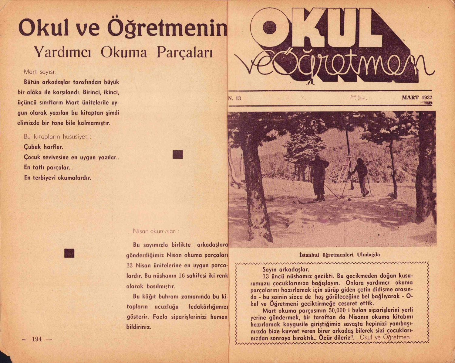 Okul ve Öğretmen, üçüncü cilt 1937, resimli, 79 sayfa, 16x24 cm
