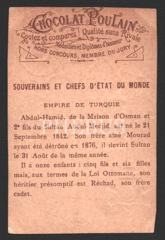 "Chocolat Poulain" marka, II. Abdulhamid görselli çikolata kartı, 7x10 cm...