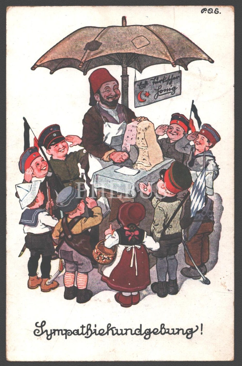 Propaganda yazılı Birinci Dünya Savaşı İttifak kartpostalı, "Sympathiekundgebung", 14x9 cm...