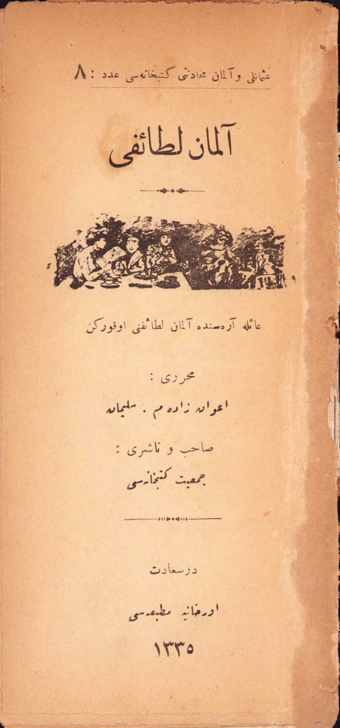 Osmanlıca Alman Letaifi, Avan Zade Süleyman, Orhaniye Matbaası, Dersaadet, 1335, Osmanlı ve Alman Muhadeneti Kitaphanesi aded: 8, haliyle, 24 sayfa, 10x20 cm