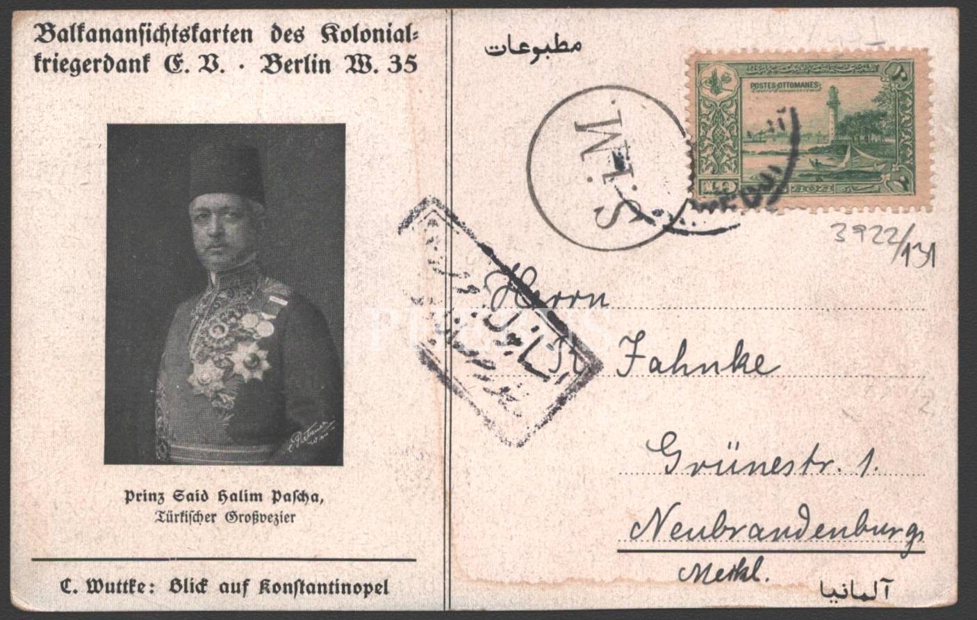 Kartpostalın arka yüzünde Said Halim Paşa´nın görseli yer almaktadır.