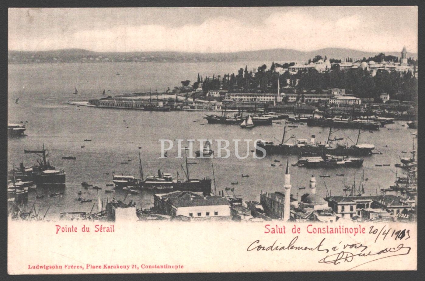 Sarayburnu manzarası, "Salut de Constantinople. Pointe du Serail", ed.: Ludwigsohn Freres (İstanbul, Karaköy), 14x9 cm...