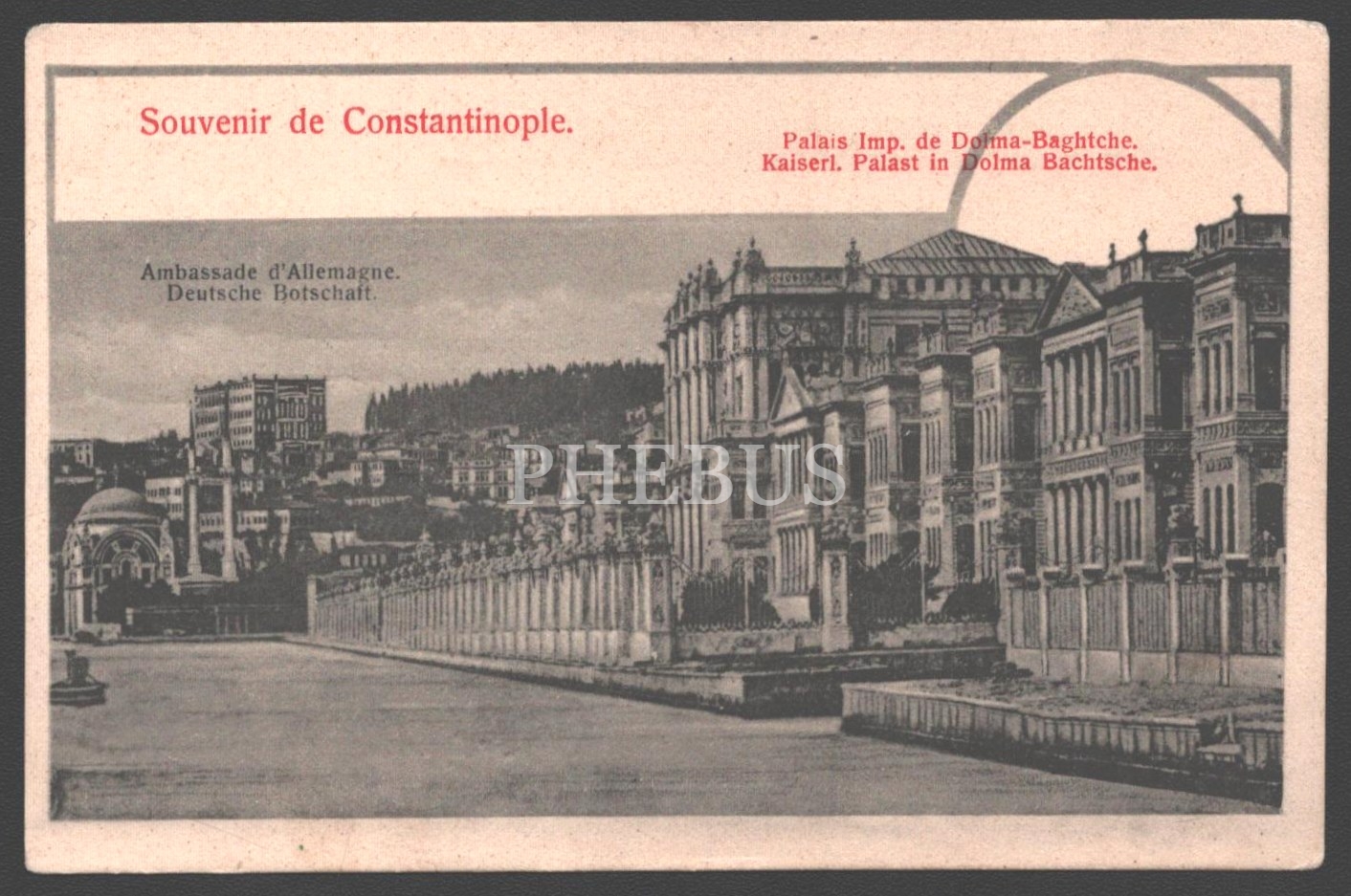 Denizden Dolmabahçe Sarayı´nın görünüşü, "Souvenir de Constantinople. Palais Imp. de Dolma-Baghtche.", 14x9 cm...