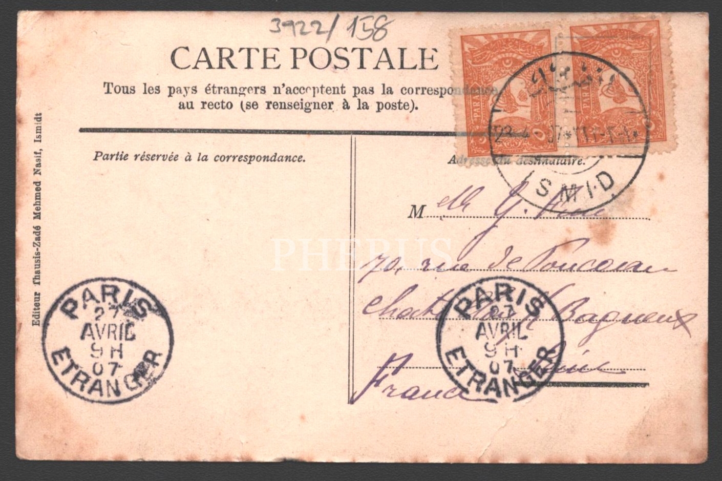 İzmit Saat Kulesi, "Le Kiosque et l´Horloge, İsmidt." ed.: Thausis-Zade Mehmed Nasif (İzmit), 14x9 cm...