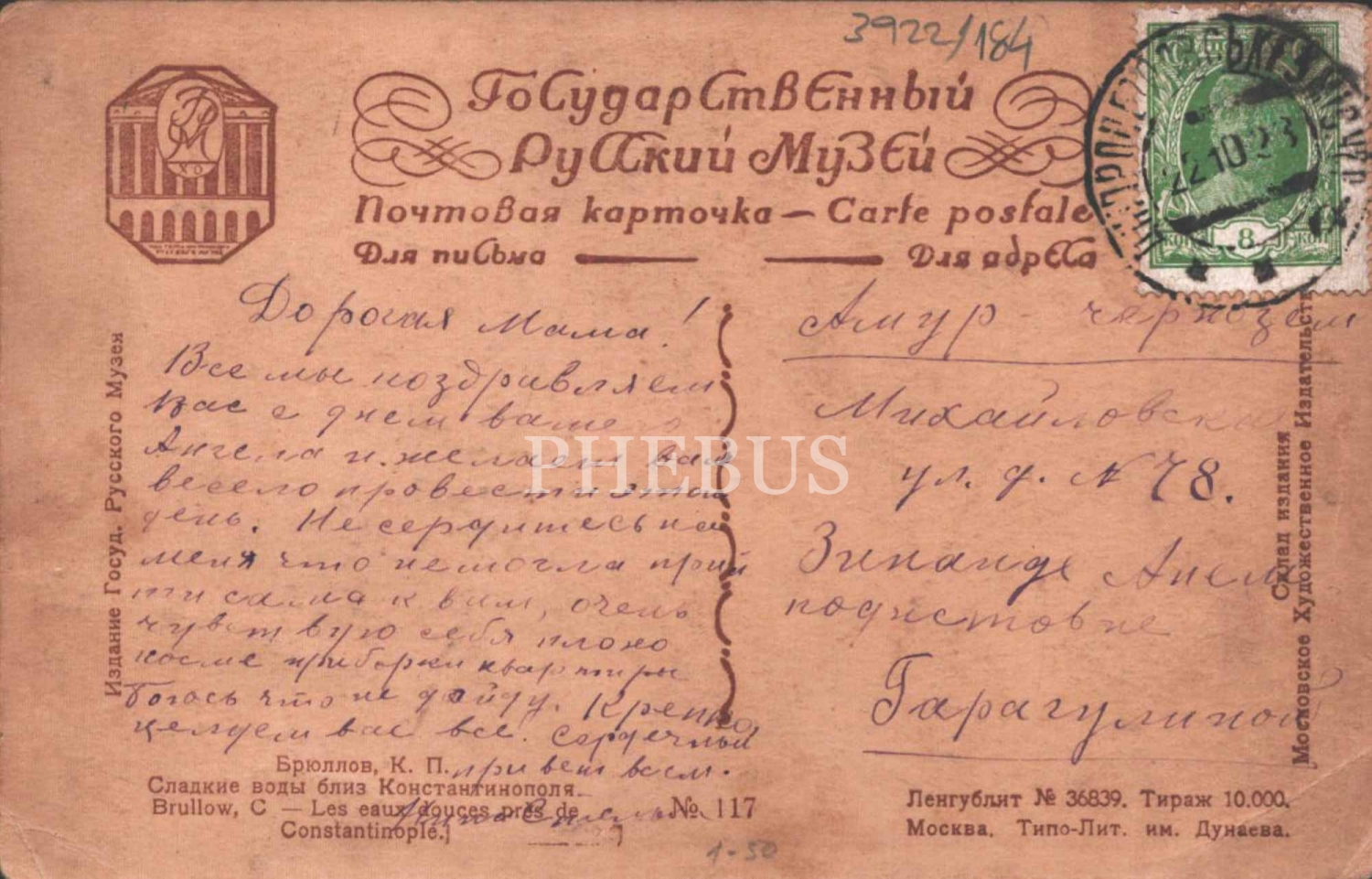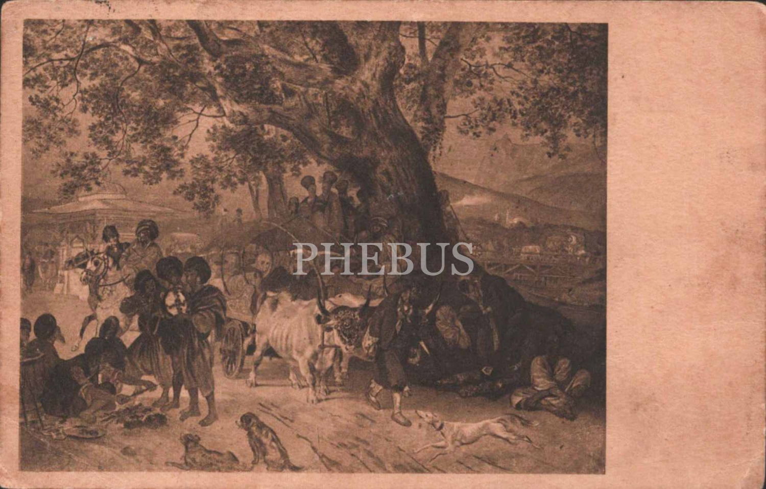 Küçüksu (Mihrişah Sultan) Çeşmesi yanında piknik yapan Osmanlılar görselli Moskova baskı kartpostal, postadan geçmiş, 14x9 cm...