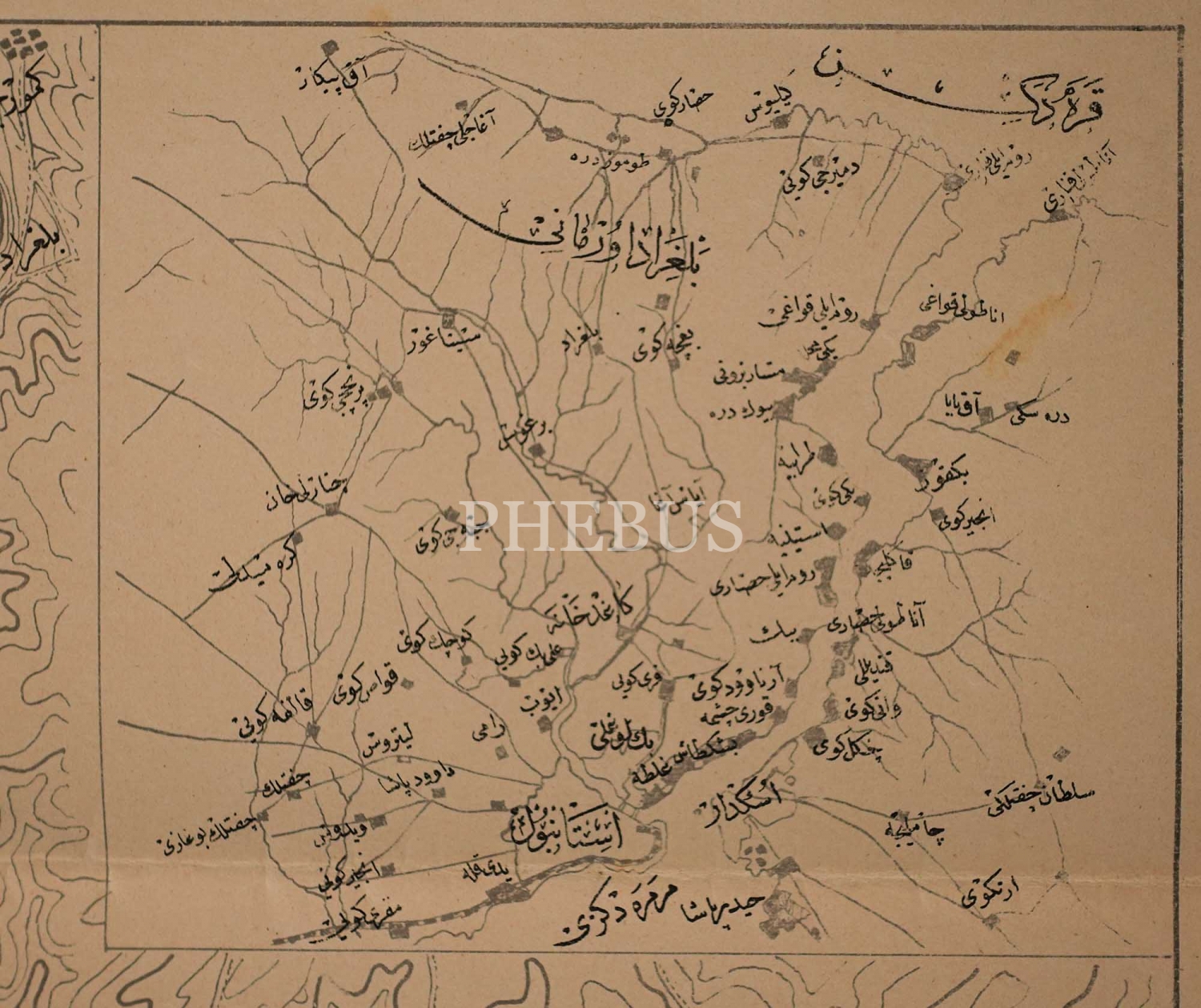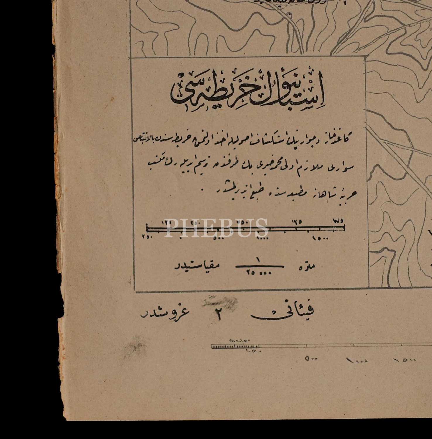 "İstanbul Haritası" başlıklı Kağıthane ve civarını gösteren Mülazım-ı evvel Mahmud Hayri Bey tarafından çizilen harita, Mekteb-i Harbiye-i Şahane Matbaası, 82x57 cm...