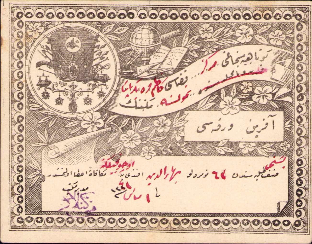 Osmanlıca Aferin, Kütahya Sancağı Merkez Kazası Kazım Karabekir Paşa Numune Mektebi, 1341, 11x8 cm