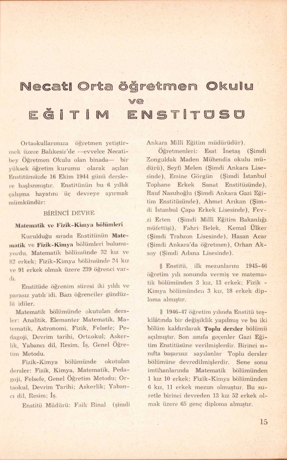 Necati Orta Öğretmen Okulu Eğitim Enstitüsü 1949 - 1950, Balıkesir, resimli, 47 sayfa, ön kapak bir kenarı kırık, 16x24 cm