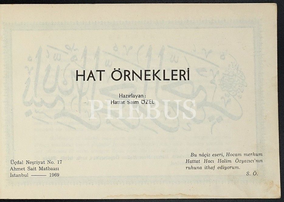 HAT ÖERNEKLERİ, Saim Özel, 1969, Üçdal Neşriyat, 64 sayfa, 24x16 cm...